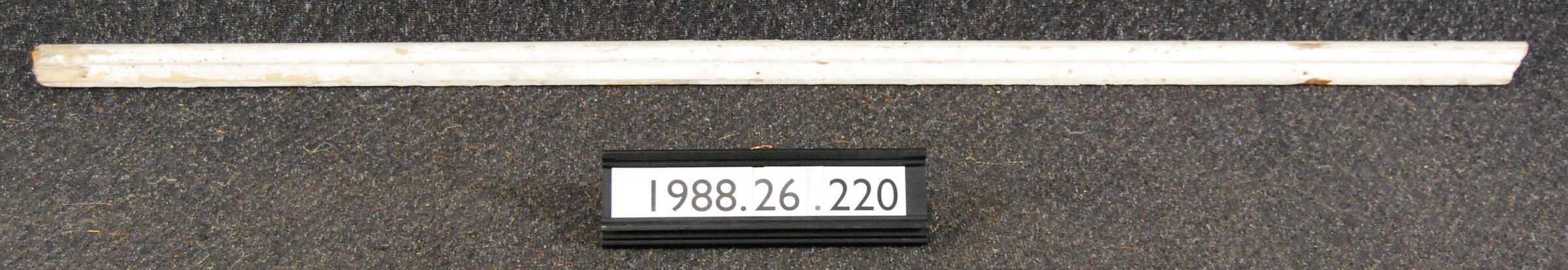 Interior wood molding. Made of soft wood. Painted white. Type: Inscriptions or Markings: Manufacturer: Place of Manufacture: Design motif: Style: Finish: Painted White