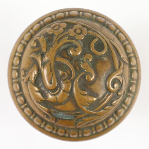 Construction: 2 part, wrought Surface Texture: Surface Color/Finish: Ornament: Design Name: DeBercy School: Remarks: VDA Classification: Group & No: B 201 Comment: Catalog : Company Name: Russell & Erwin Date: 1897 Material: Bronze Manufacturing Method: Wrought bronze