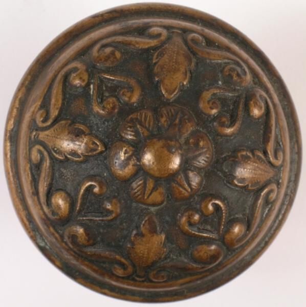 Construction: 3 part Surface Texture: Surface Color/Finish: Bronze Ornament: Stamped Design Name: Mura School: Vernacular Remarks: VDA Classification: Group & No: H 459 Comment: Catalog : Company Name: Reading Date: 1887 Material: Metal - wrought bronze Manufacturing Method: Wrought