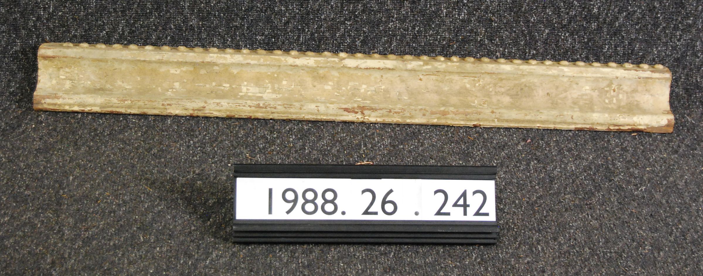Interior wood molding (cove with beaded decoration on edge). Made of soft wood. Painted yellow. Type: Inscriptions or Markings: Manufacturer: Place of Manufacture: Design motif: Style: Finish: Painted Yellow