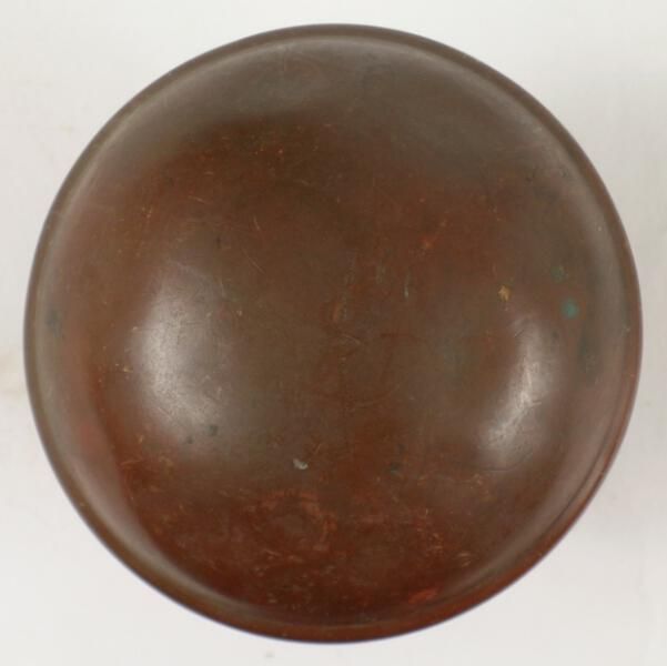 Construction: 2 part, plain wrought metal Surface Texture: Surface Color/Finish: Ornament: Design Name: School: Remarks: Plain generic knob - made by many companies VDA Classification: Group & No: Comment: Catalog : Company Name: Corbin Date: c. 1900 Material: Brass Manufacturing Method: Plain wrought metal