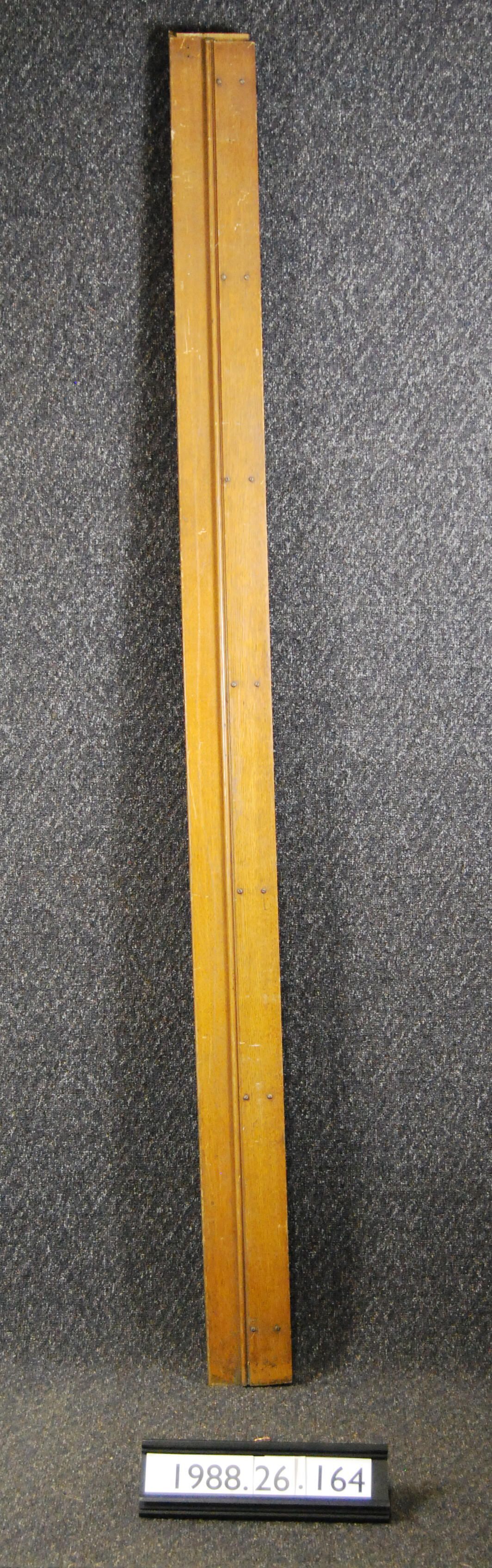 Interior wood window (?) frame component. Has jamb strip attached with iron screws. Made of oak. Type: Inscriptions or Markings: Manufacturer: Place of Manufacture: Design motif: Style: Finish: