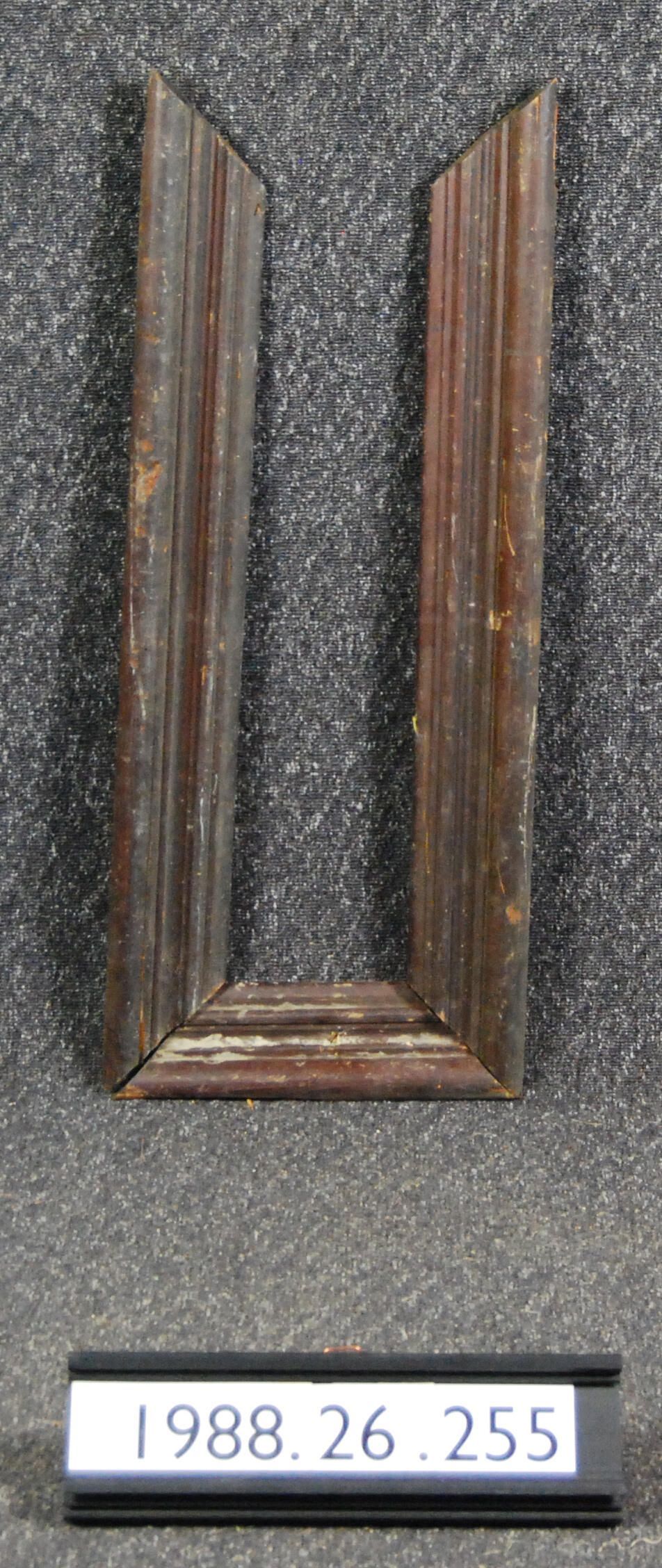 One lot of three Interior wood moldings. Mitered on ends. Together they probably formed panel surround. Made of soft wood. Varnished. Type: Inscriptions or Markings: Manufacturer: Place of Manufacture: Design motif: Style: Finish: Varnished.
