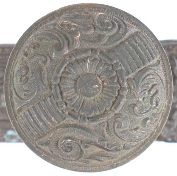 Construction: 2 part cast - ringed Surface Texture: Surface Color/Finish: Japanned Ornament: Cast Design Name: Portulaca School: Renaissance Remarks: Ringed with bronze bead VDA Classification: Group & No: F 206 Comment: Catalog : Company Name: Date: c. 1895 Material: Cast Bronze Manufacturing Method: Cast Bronze