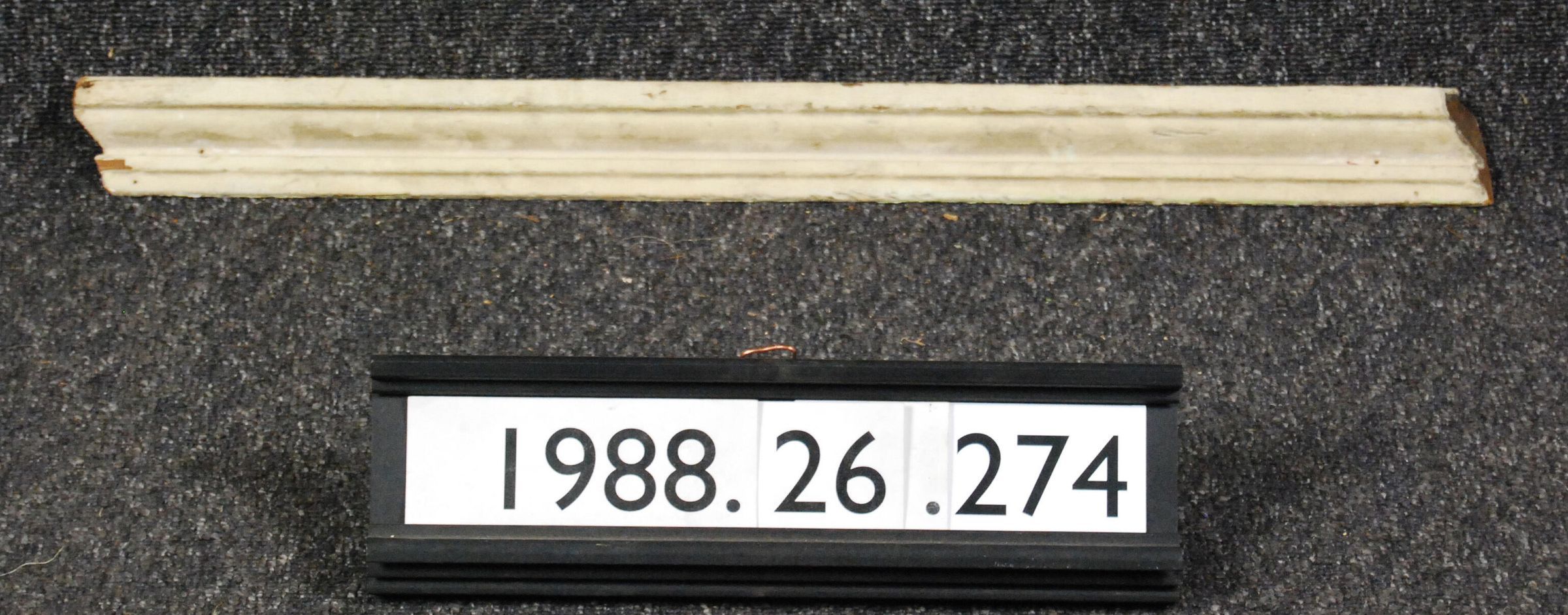 Interior wood molding. Made of soft wood. Painted tan or off-white. Type: Inscriptions or Markings: Manufacturer: Place of Manufacture: Design motif: Style: Finish: Painted Tan or Off-White