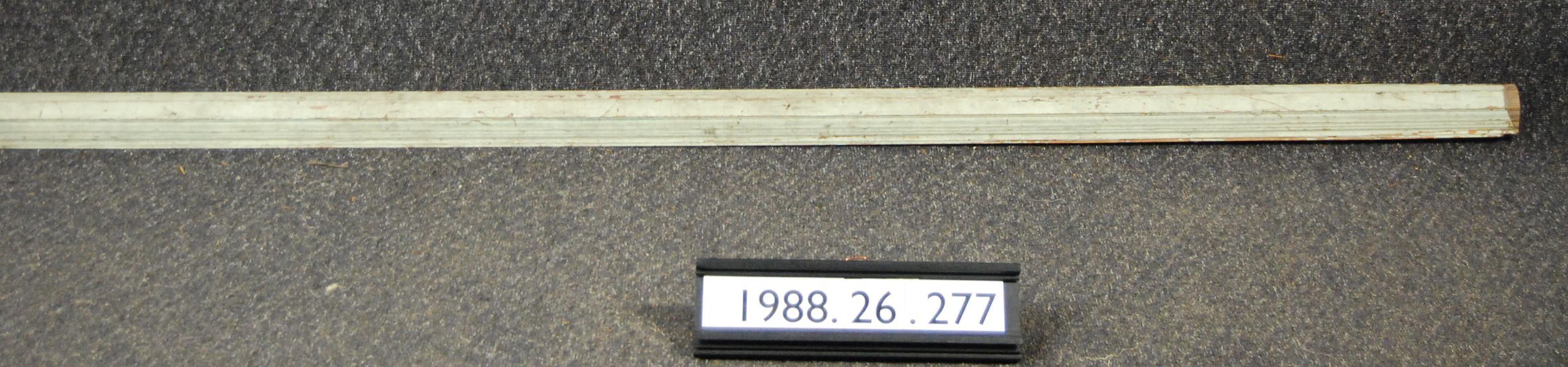 Interior wood molding. Originally used in horizontal orientation. Made of soft wood. Painted green. Type: Inscriptions or Markings: Manufacturer: Place of Manufacture: Design motif: Style: Finish: Painted Green