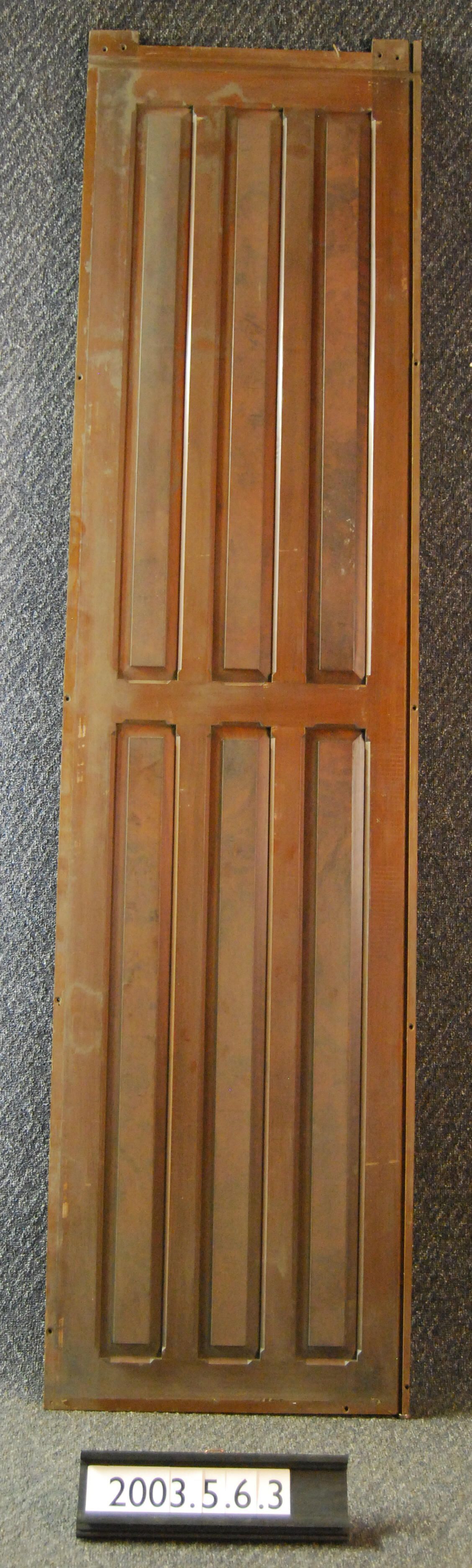 Interior wood panel. Originally part of wall at Inglenook, second floor, off of master bed-room. Exact position undetermined. Has series of inset panels with burled veneer. Made of walnut. Varnished.
