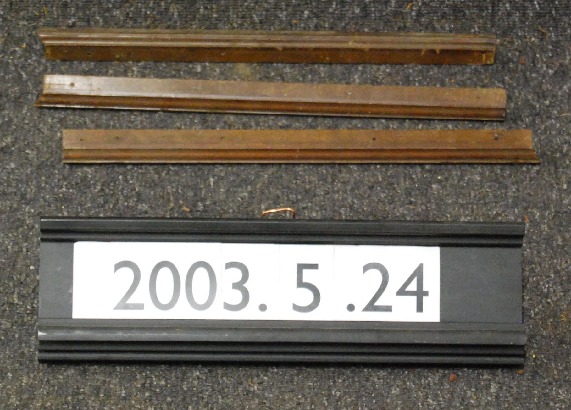 One lot of three interior wood moldings. Ogee profile. Each is coped on one end. Attributed to Knapp House, but original placement undetermined. Made of walnut. Varnished.