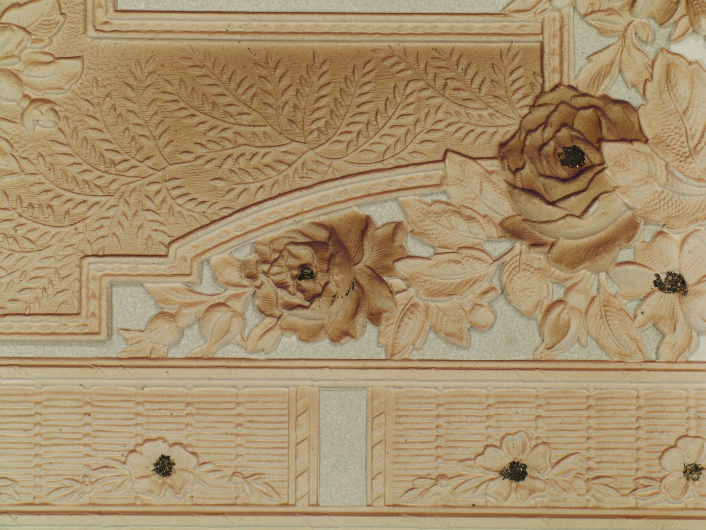 Features and Comments: Sample, unhung; Cutout frieze.