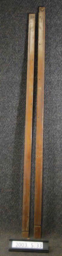 One lot of two trim boards. Each has cove edge. One has attached short section of rounded molding (same molding profile as 2003.5.30 - 2003.5.32). Made of walnut. Varnished.