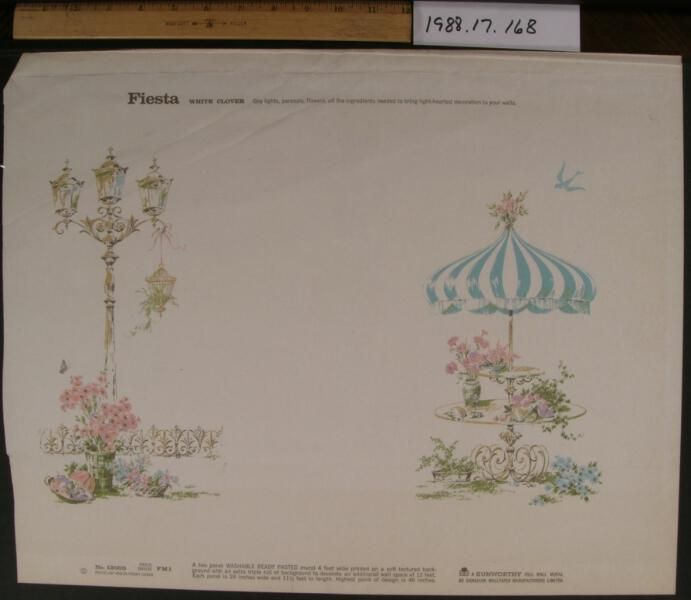 Features and Comments: "Fiesta - White Clover - Gay lights, parasols, flowers, all the ingredients needed to bring light - hearted decoration to your walls."Lexicon