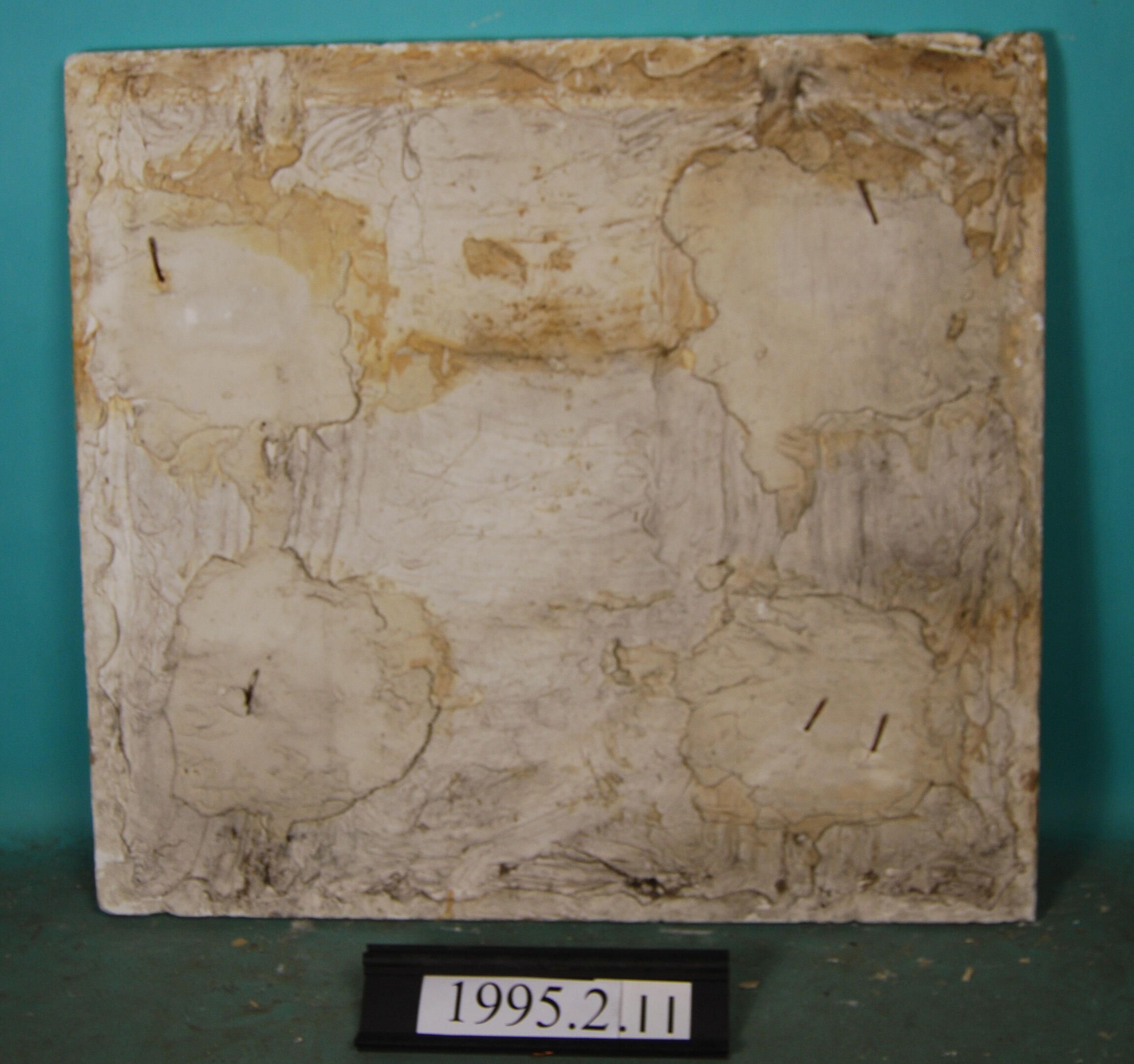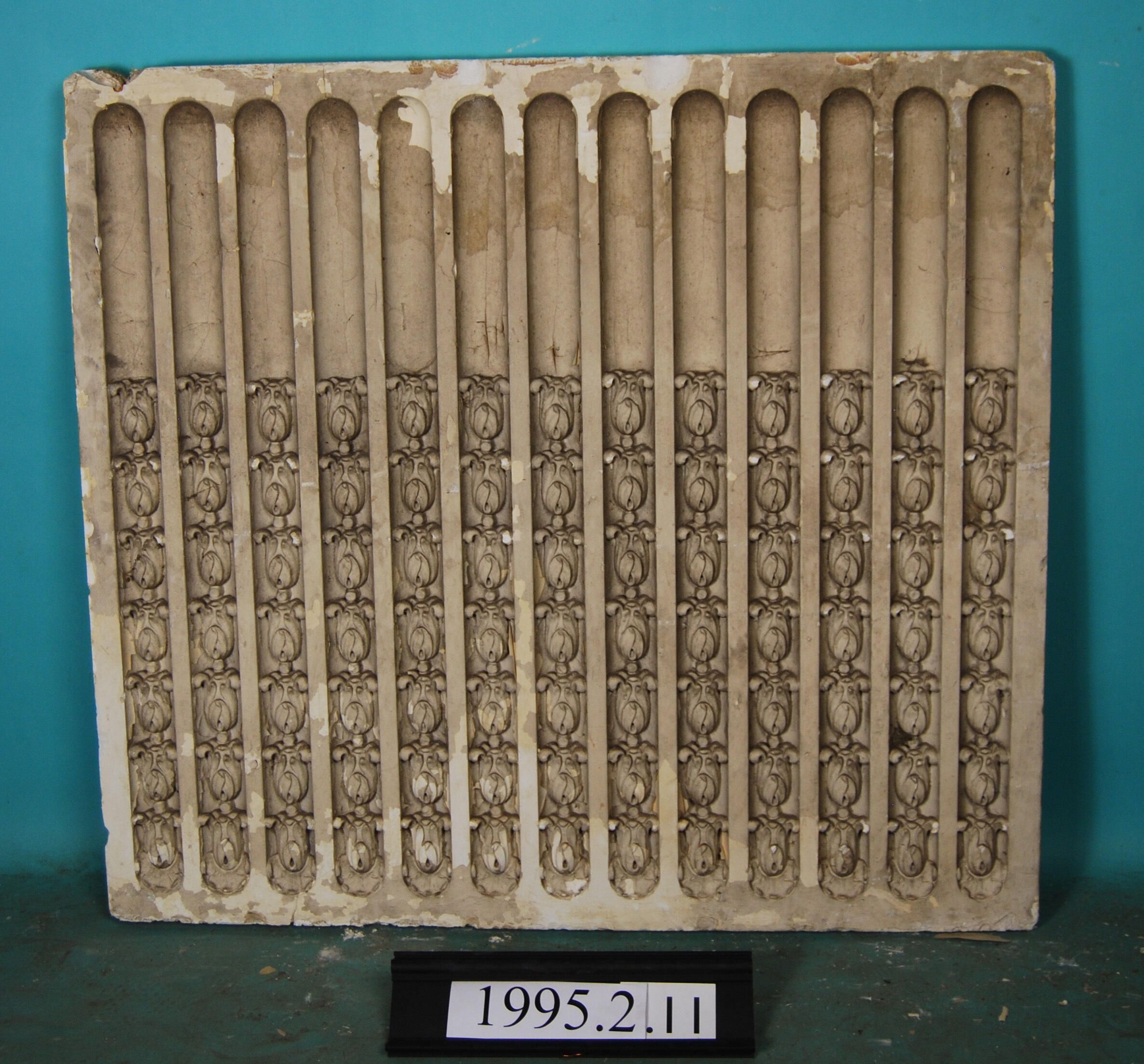 Plaster panel associated with assemblage from the former Lincoln High School, Portland, Oregon. Rectangular with botanical ornamentation within fluting. Painted.