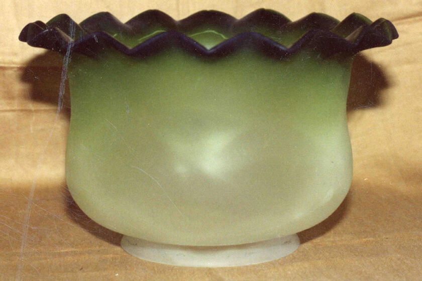 Blown glass gas shade optic pattern, green tinted, hand crimped