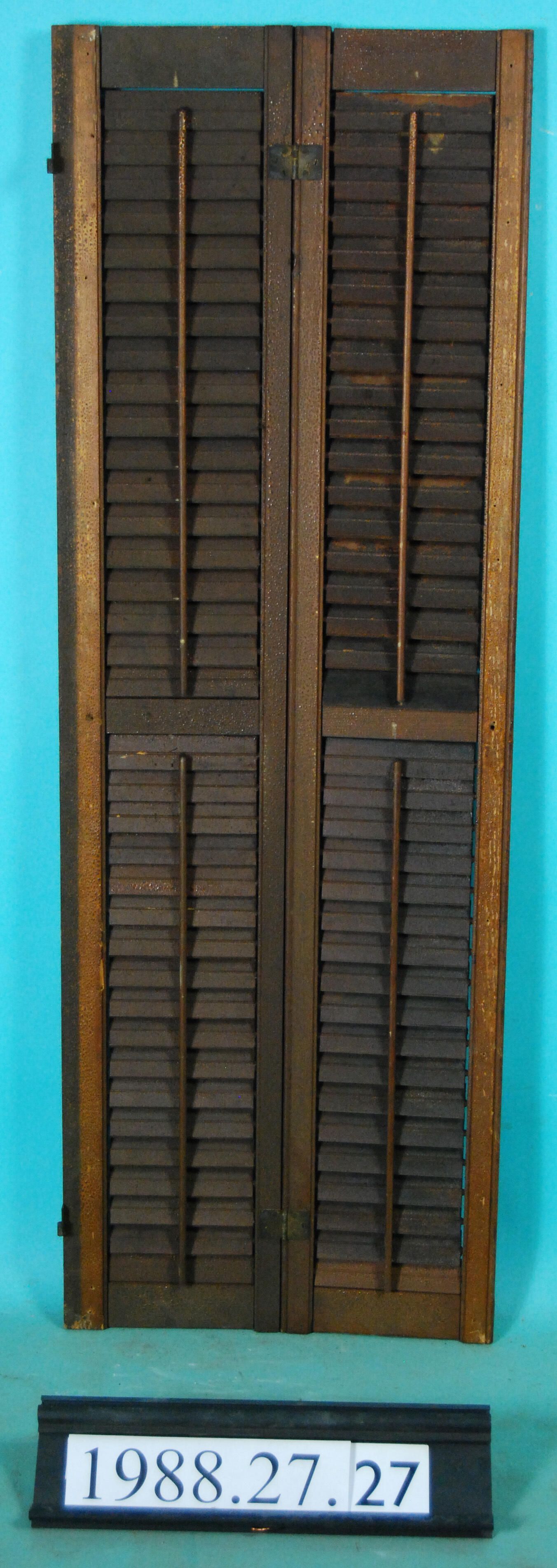 Pair of interior wood shutters joined with hinges. Varnished. Finish: Varnished Material: Wood