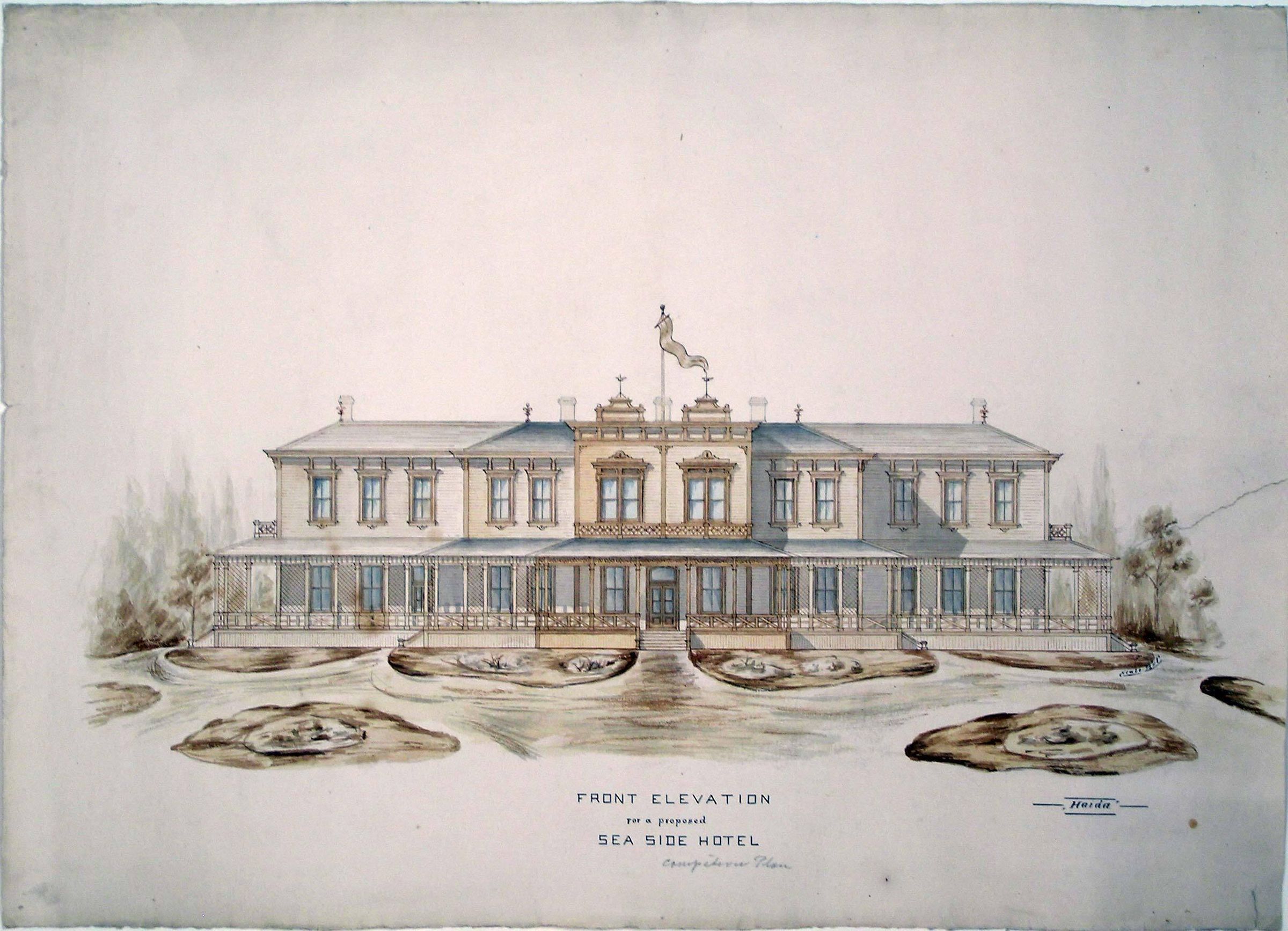 Building Name: Haida Hotel Building Location: Seaside, OR Architect: C.W. Leick Still Existing?: Unknown if ever built Building Description: Hotel List of Drawings in set: Front elevation rendering Painting on paper