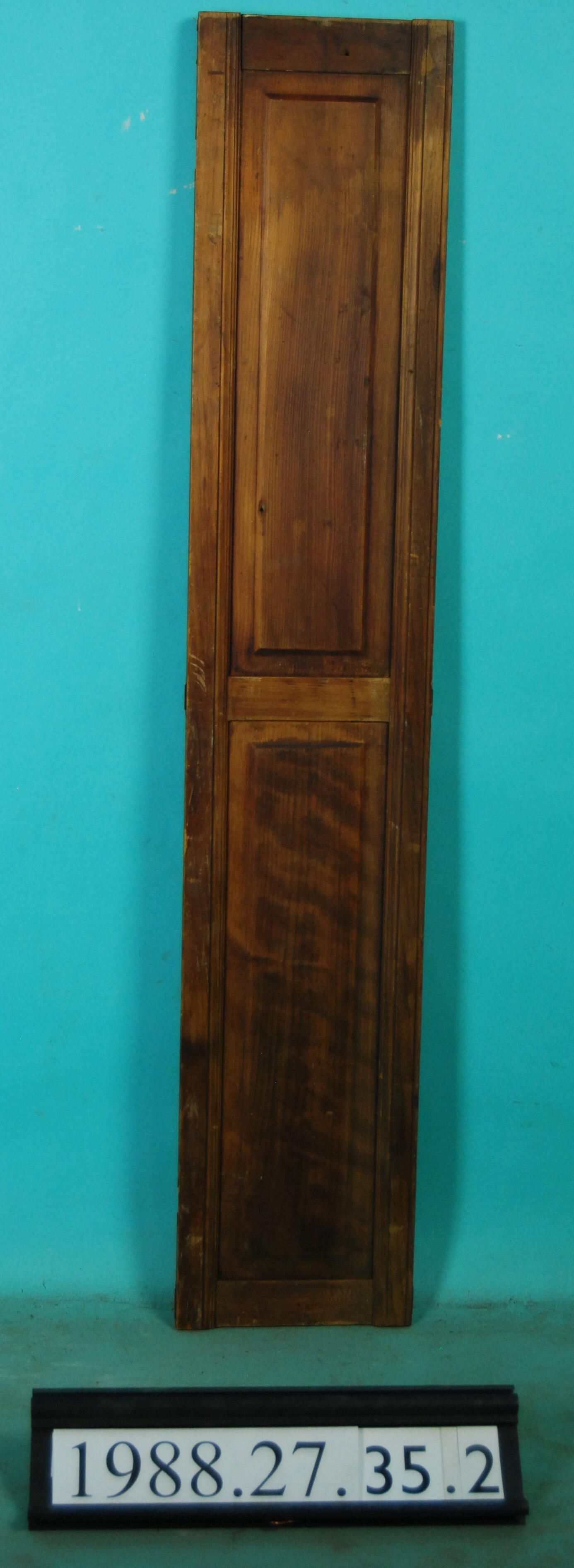 Single interior wood shutter leaf with panels. Varnished. Finish: Varnished Material: Wood