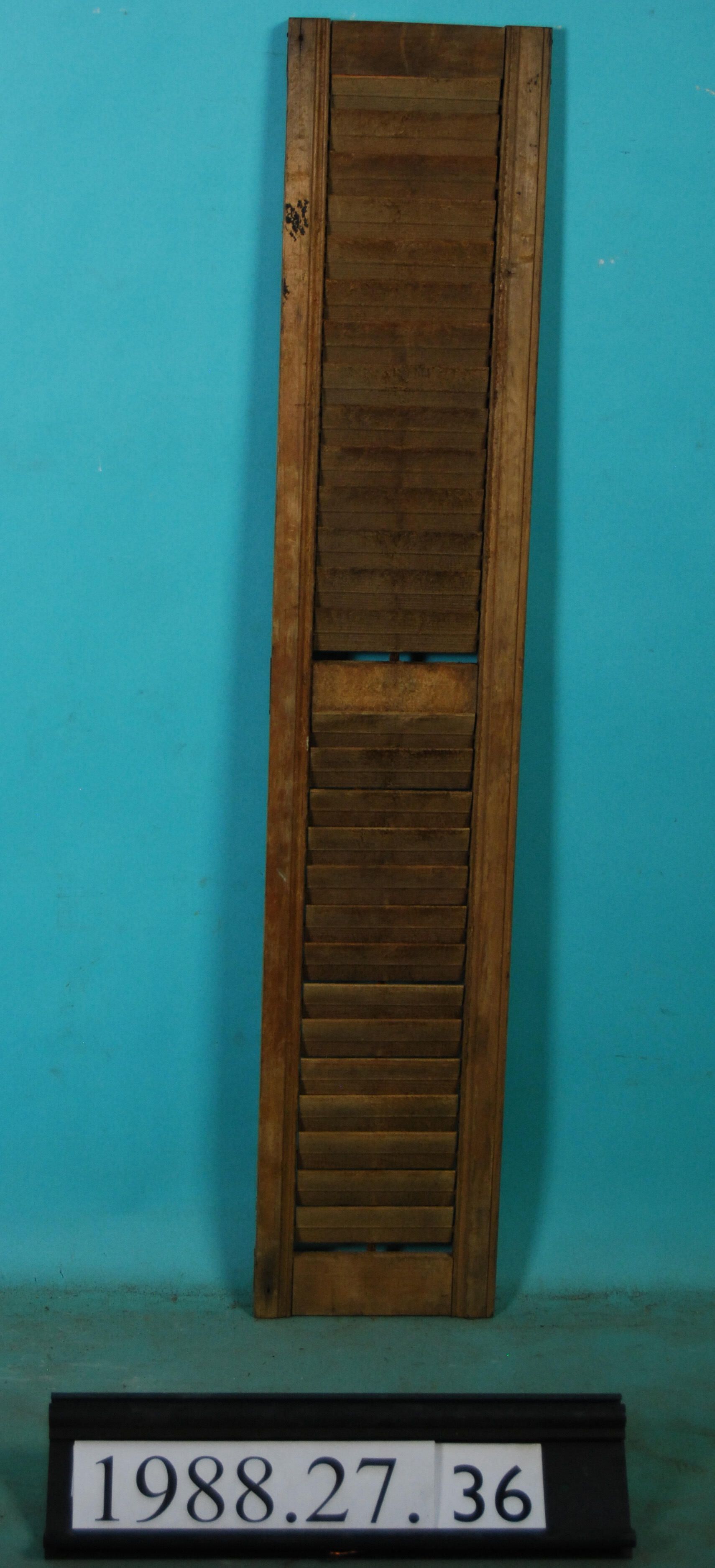 Single interior wood shutter leaf - louvered. Stripped. Finish: Stripped Material: Wood