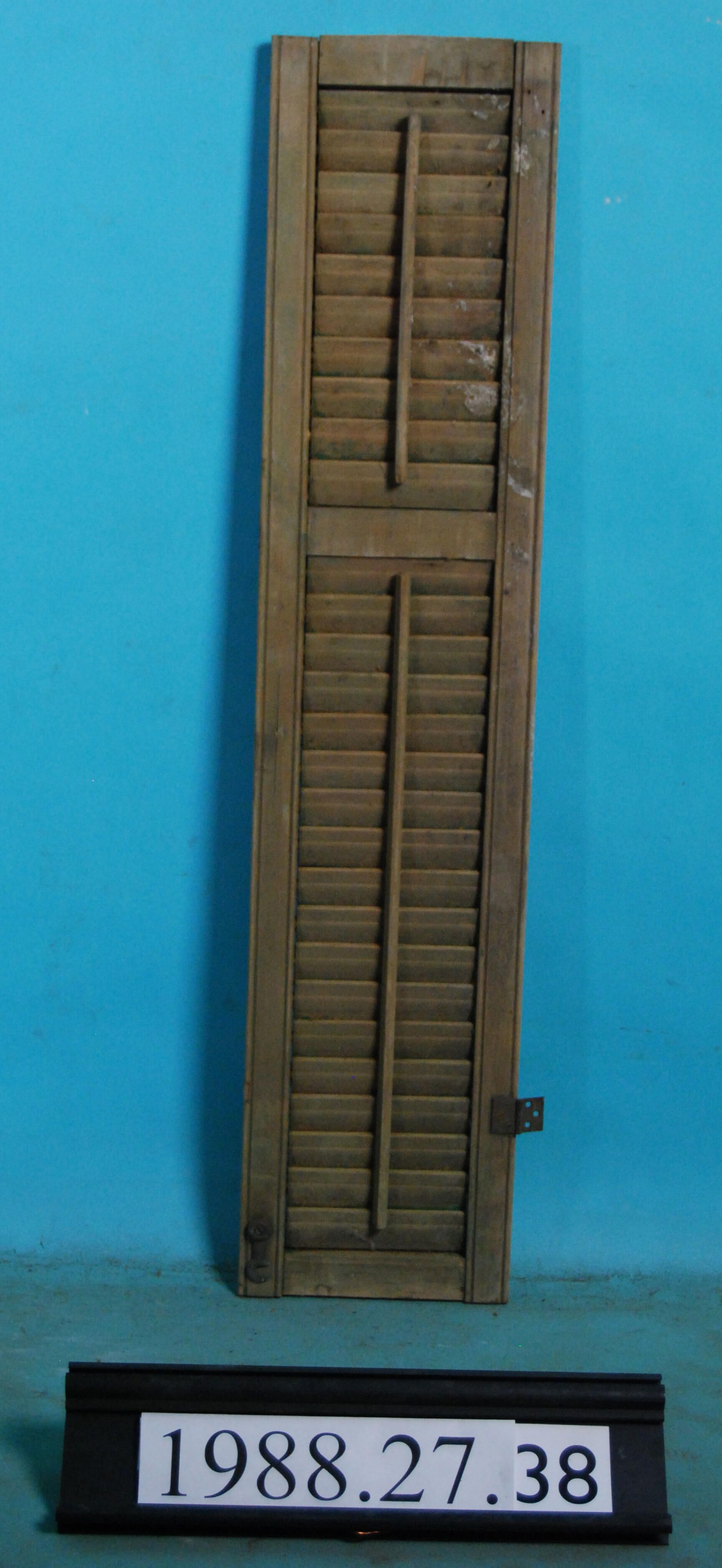 Single interior wood shutter leaf - louvered. Stripped. Finish: Stripped Material: Wood