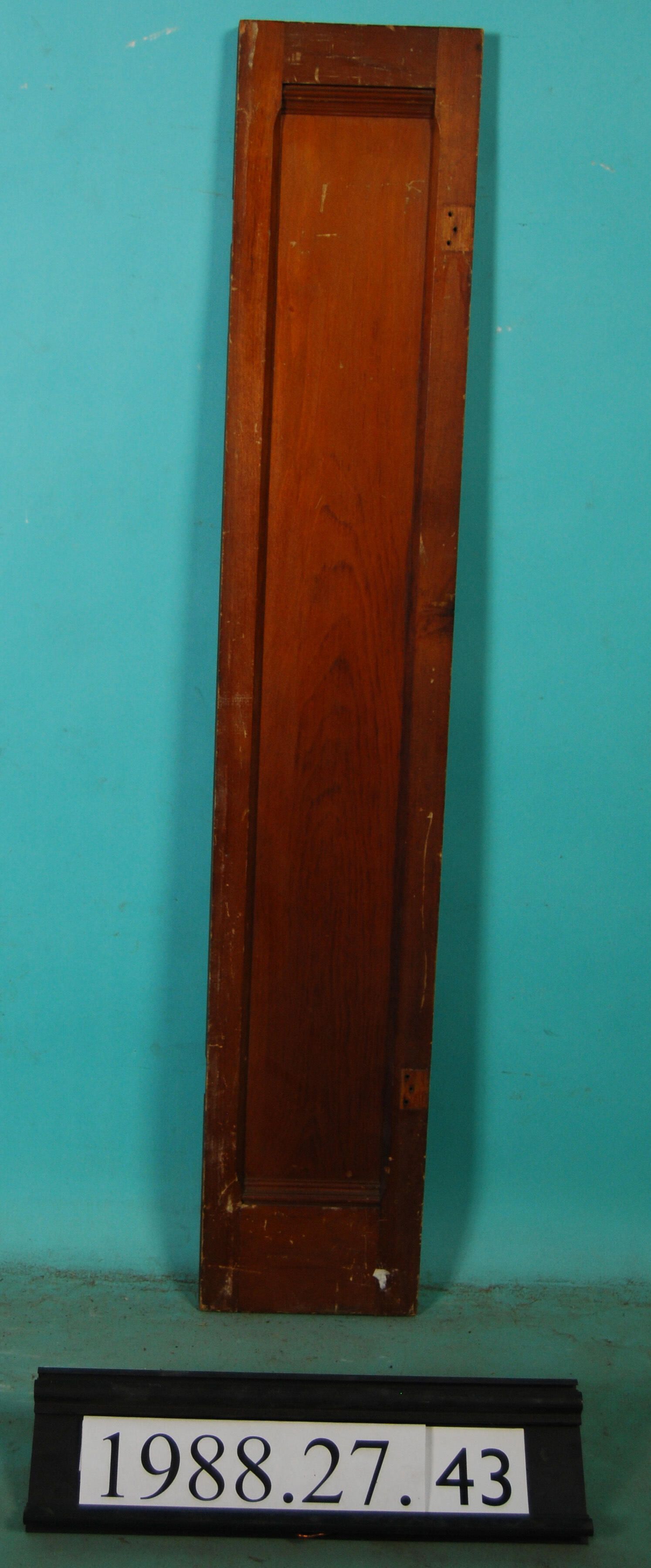 One single interior wood shutter with panel - No hardware.. Varnished. Finish: Varnished Material: Wood