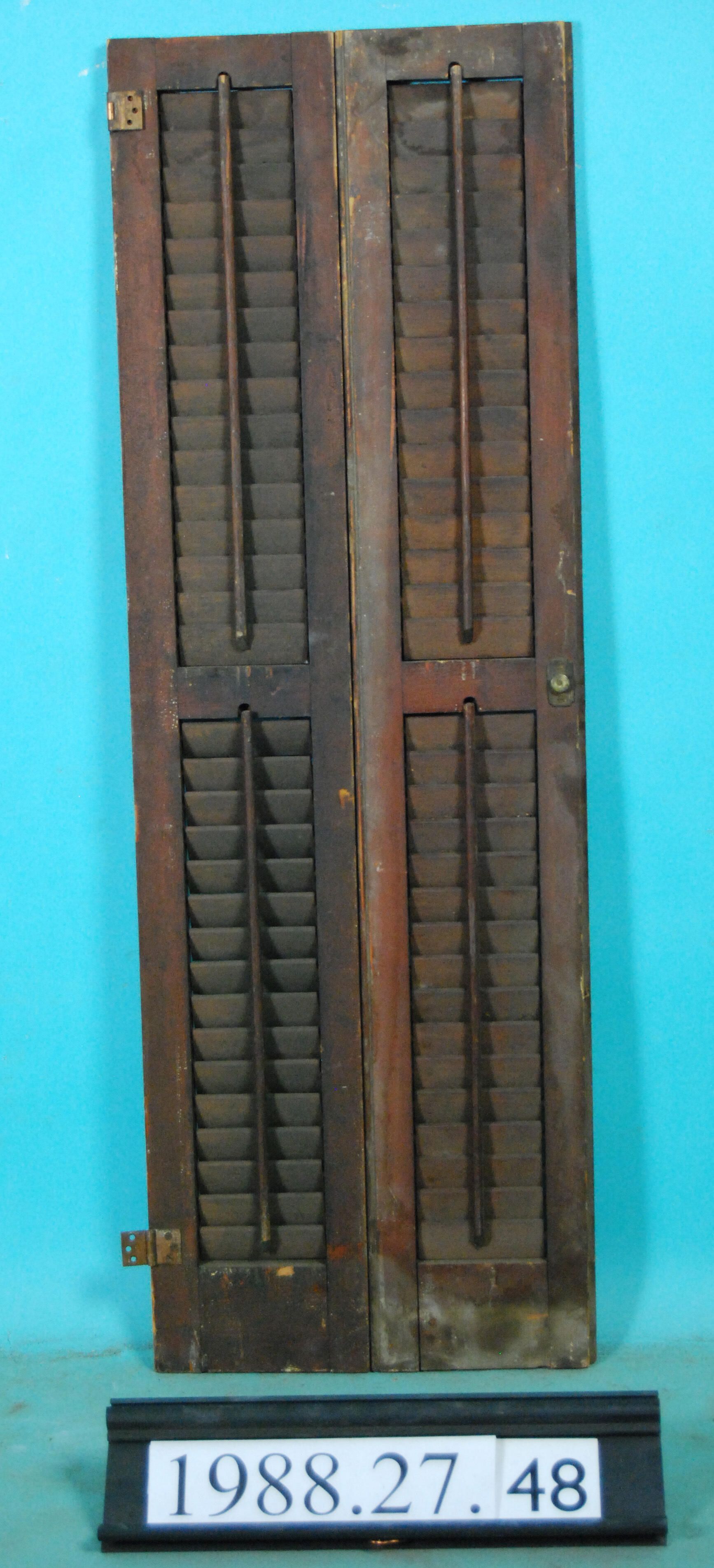One pair of interior wood louvered shutter leaves, not joined by hinges but matching. Finish: varnished Material: Wood
