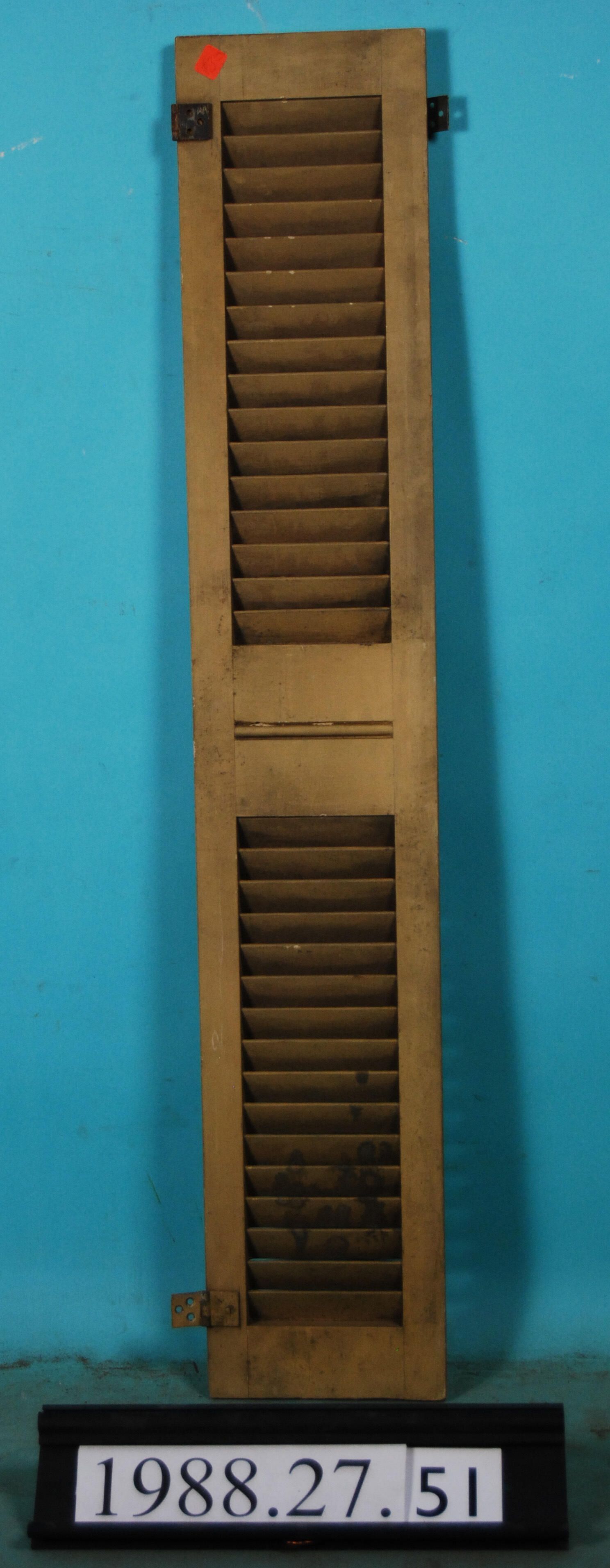 Single louvered shutter leaf, Painted tan color. Finish: Painted Material: Wood