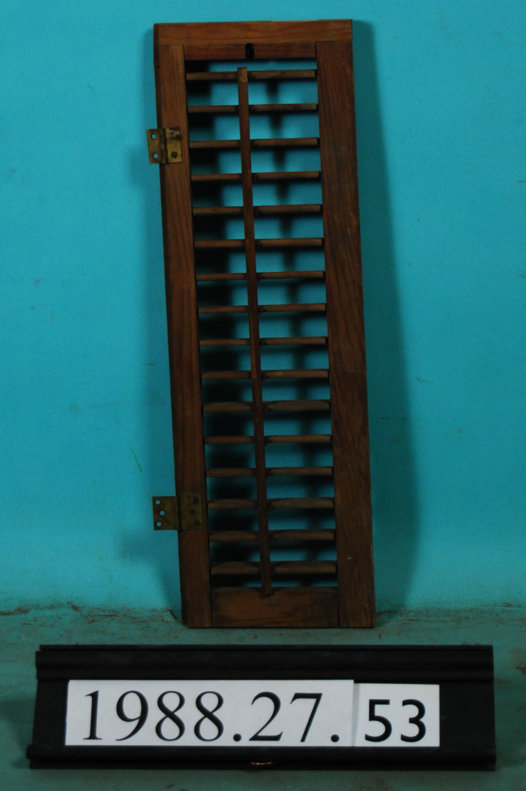 Single interior louvered shutter leaf with hinges. Finish: Varnished Material: Wood