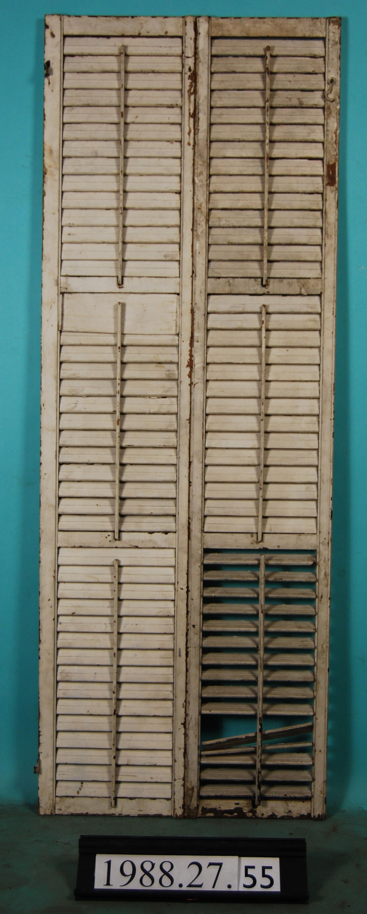 One pair of interior louvered shutter leaves joined with hinges.Painted white Finish: Painted Material: Wood