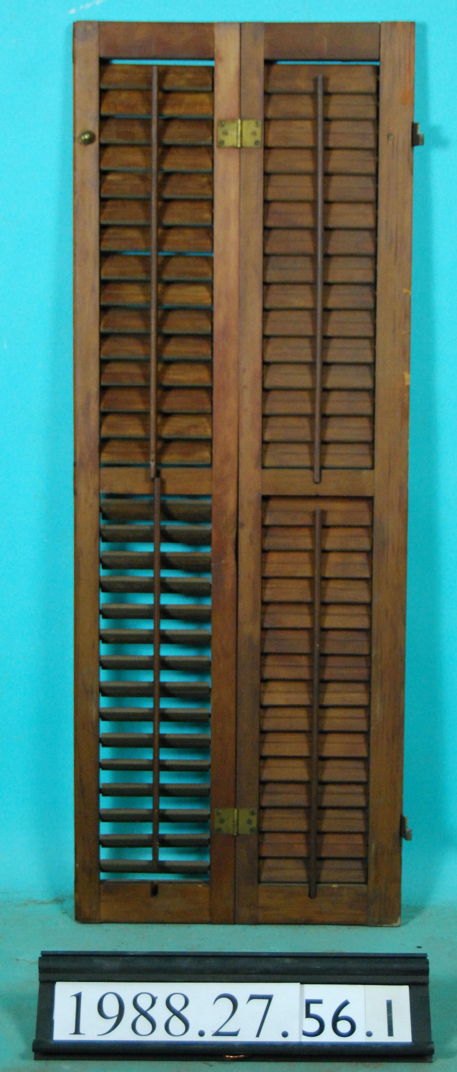 One pair of interior louvered shutter leaves joined with hinges. Finish: Varnished Material: Wood