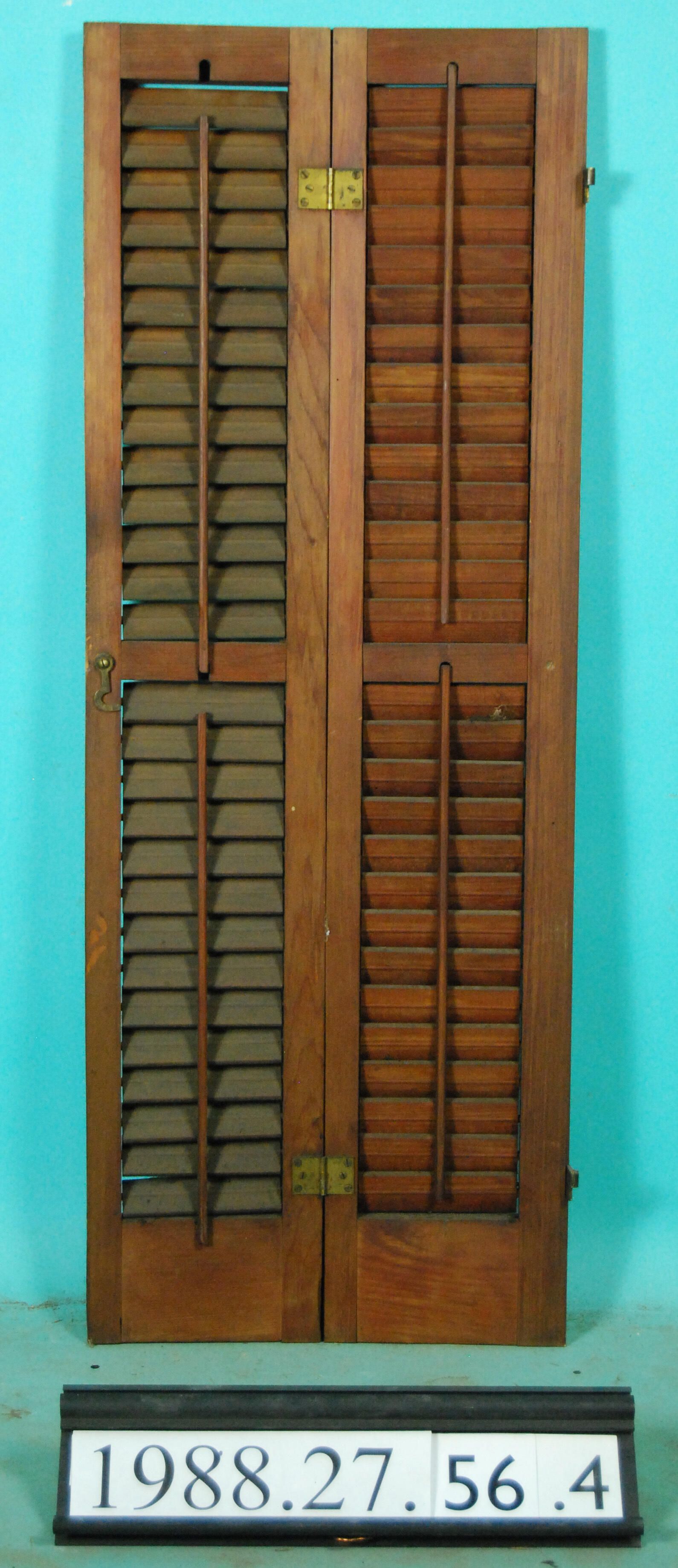 One pair of interior louvered shutter leaves joined with hinges. Finish: Varnished Material: Wood