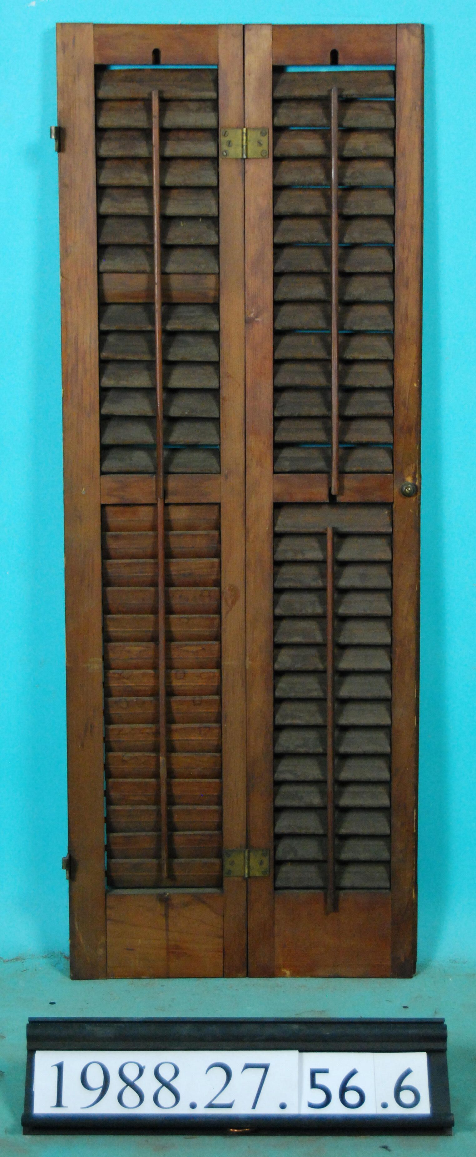 One pair of interior louvered shutter leaves joined with hinges. Finish: Varnished Material: Wood