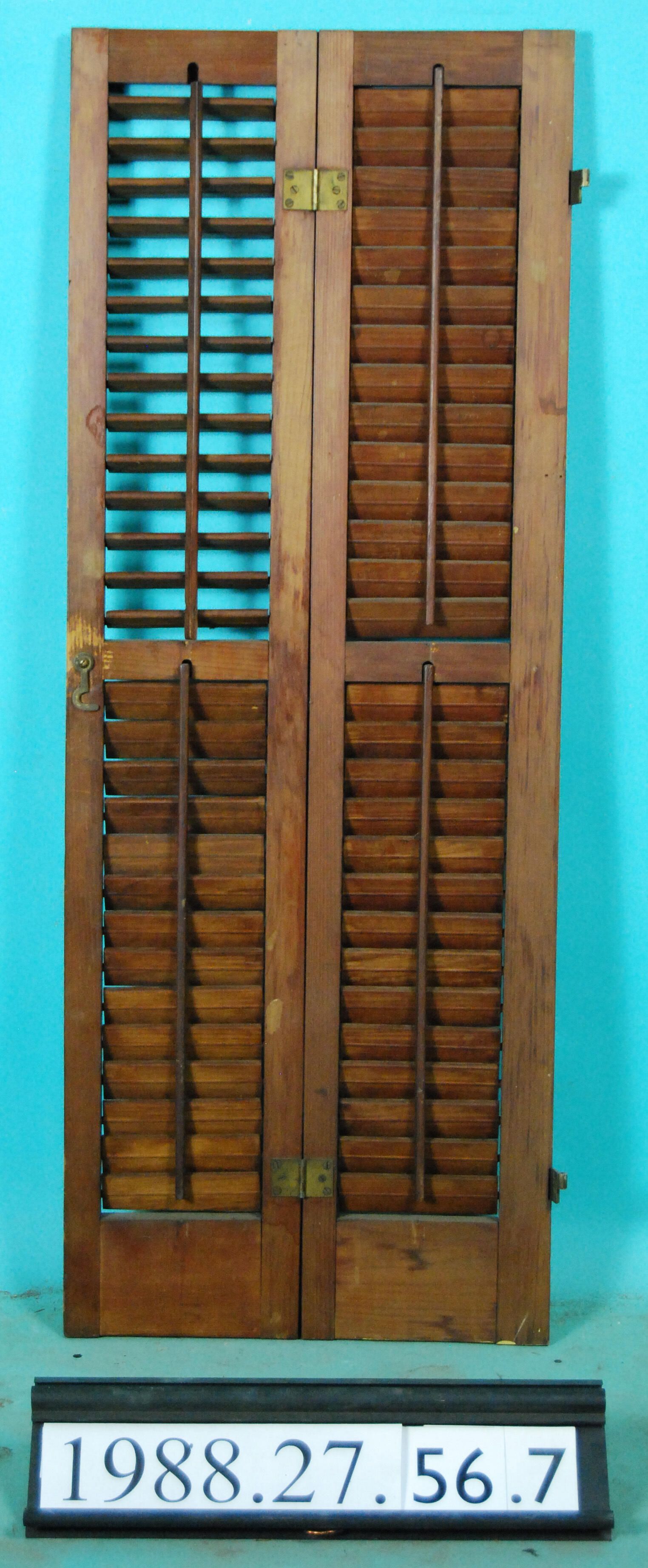 One pair of interior louvered shutter leaves joined with hinges. Finish: Varnished Material: Wood