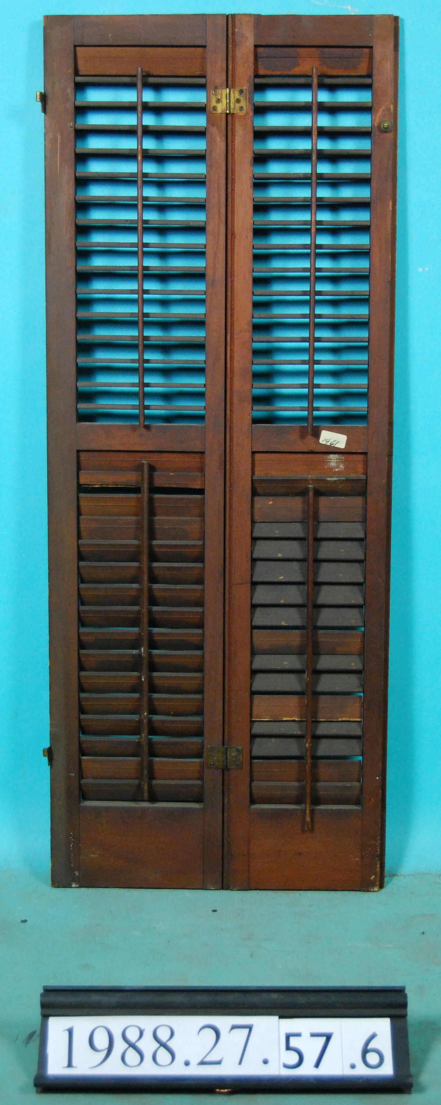 One pair of interior louvered shutter leaves joined with hinges. Finish: Varnished Material: Wood