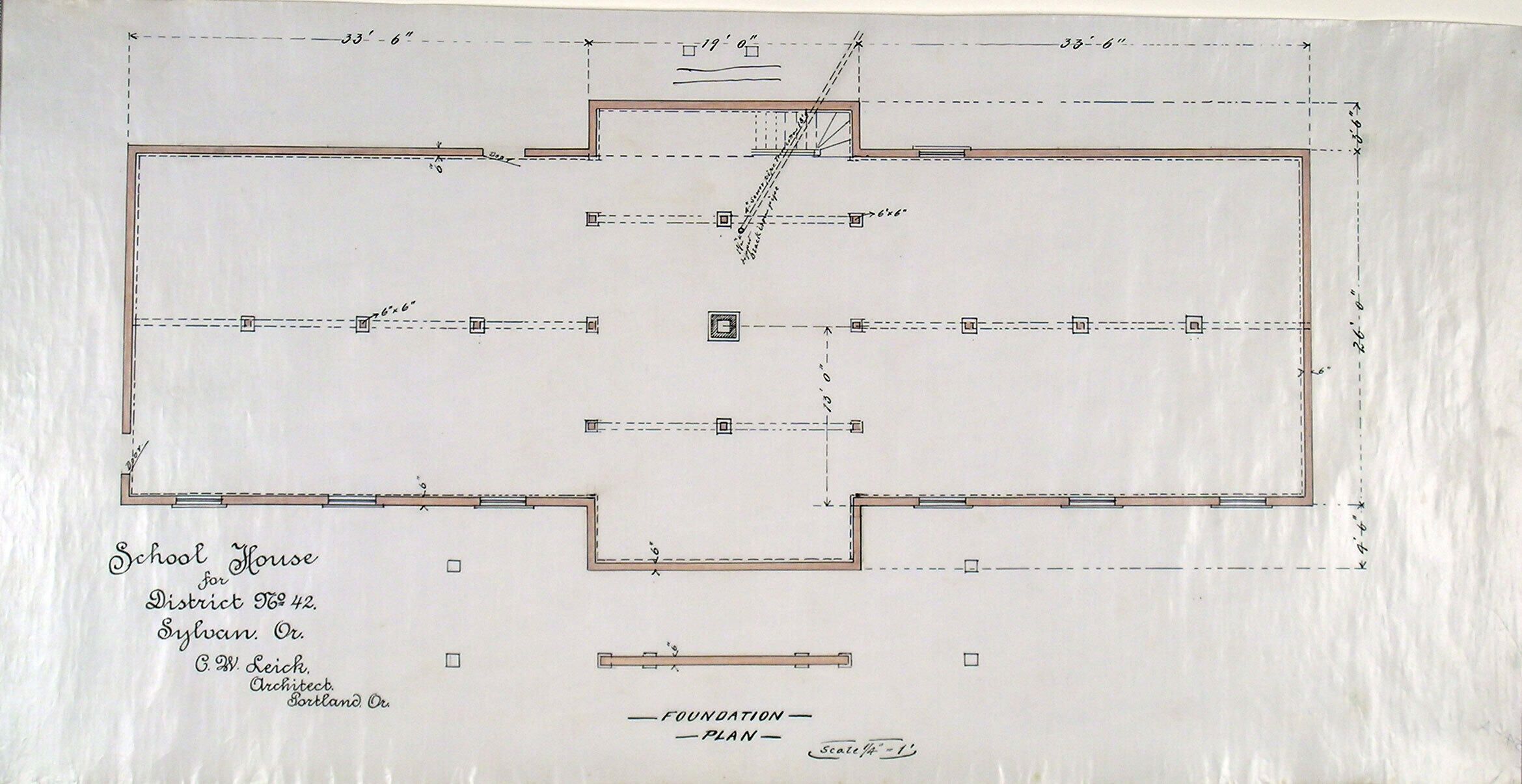 List of Drawings in set: founddation plan - ink on linen, also attached photo of title page