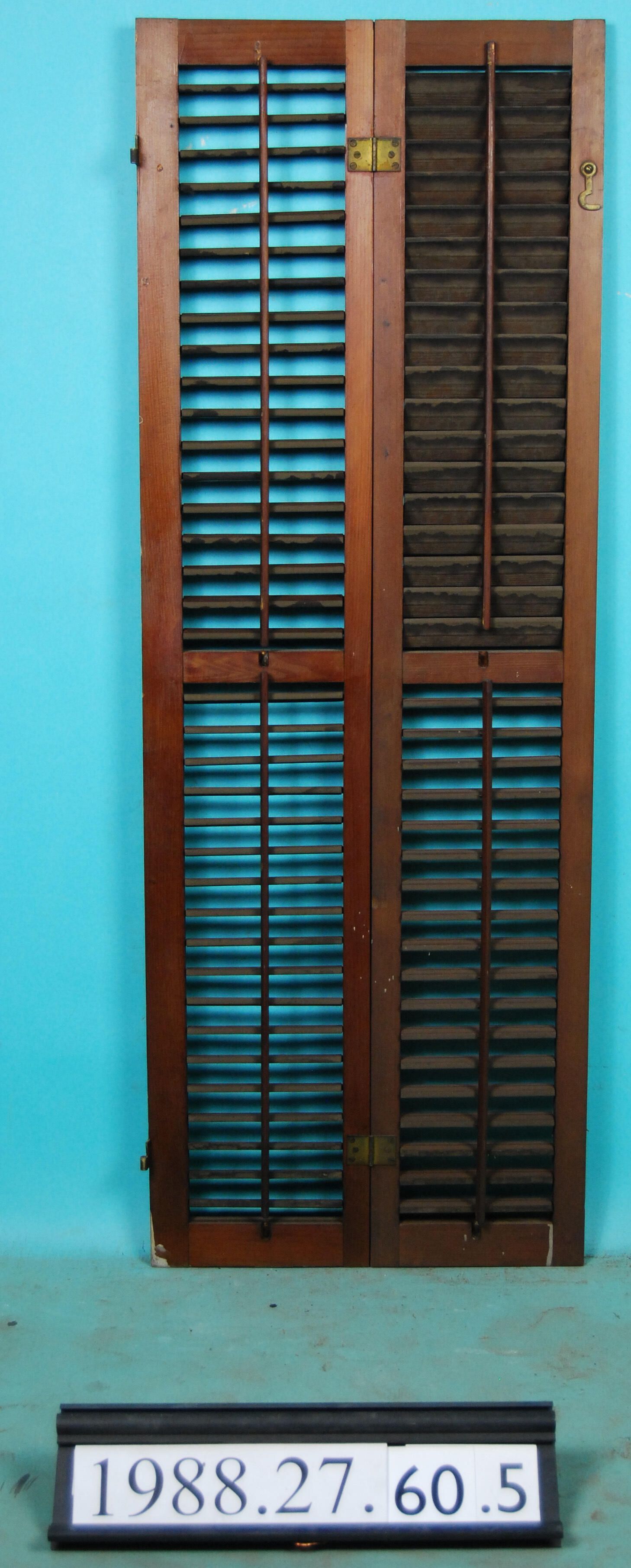 One pair of interior louvered shutter leaves joined with hinges. Finish: Varnished Material: Wood