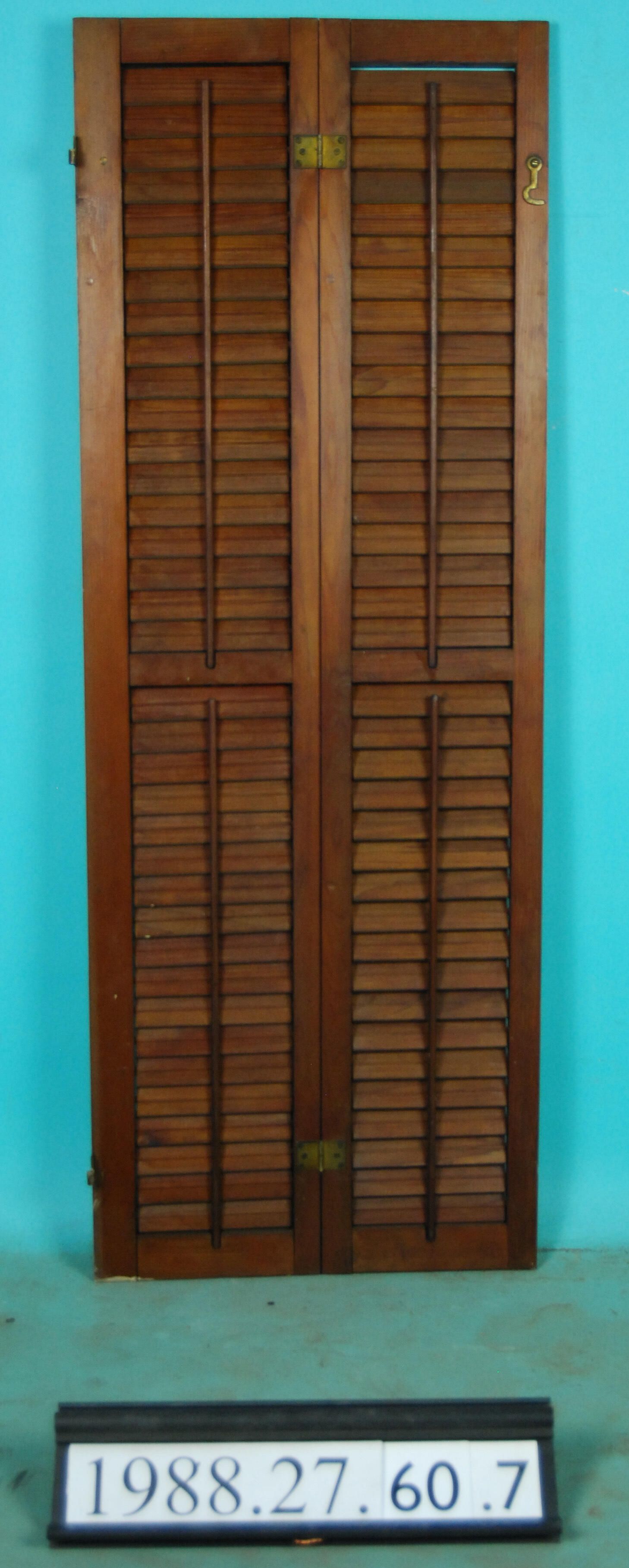 One pair of interior louvered shutter leaves joined with hinges. Finish: Varnished Material: Wood