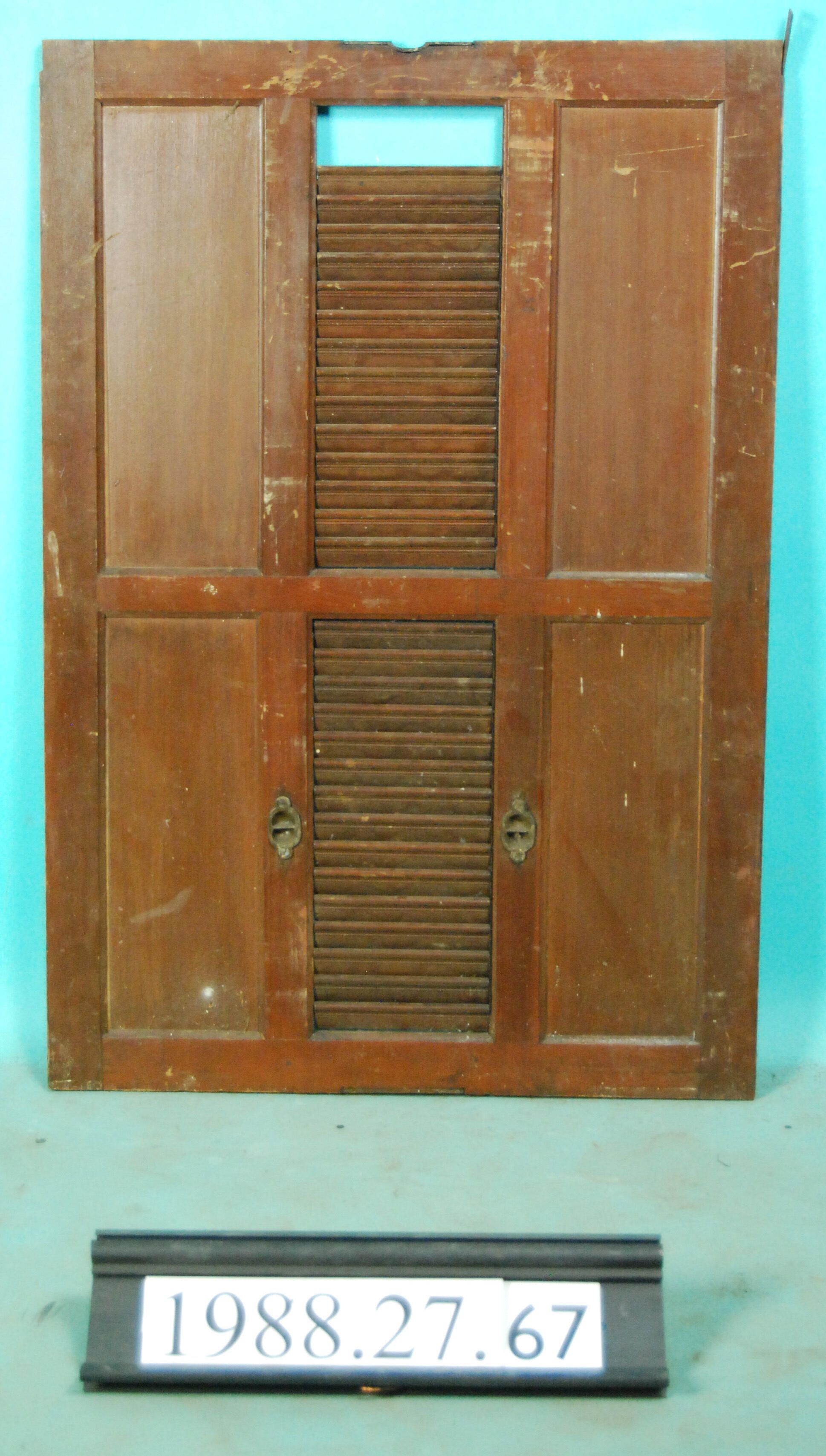 Single interior louvered shutter lthe louvered section is flanked on each side with panels. Varnished Material: Wood