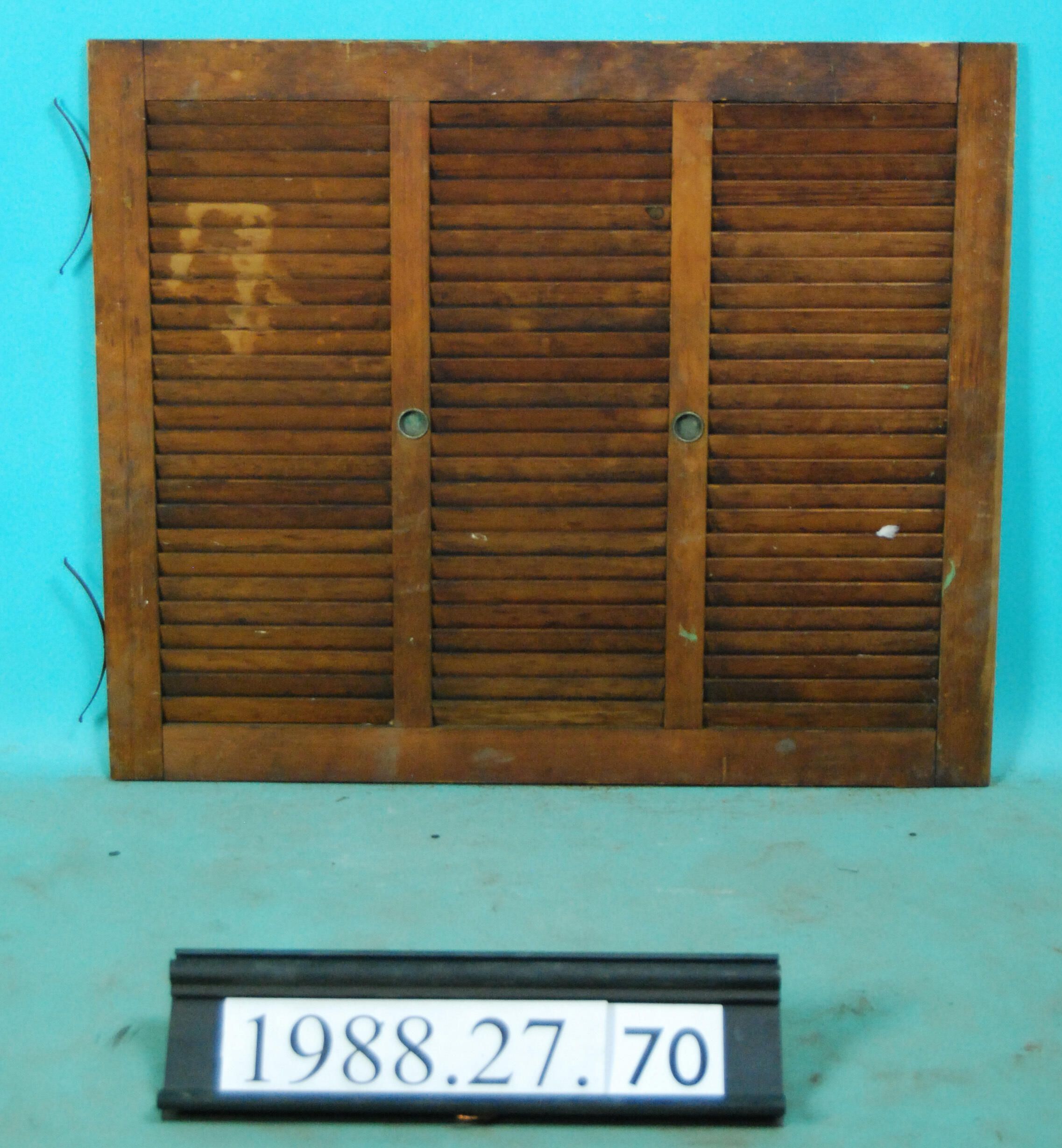 Single interior louvered shutter/blind designed to slide vertically within window frame,varnished. Material: Wood