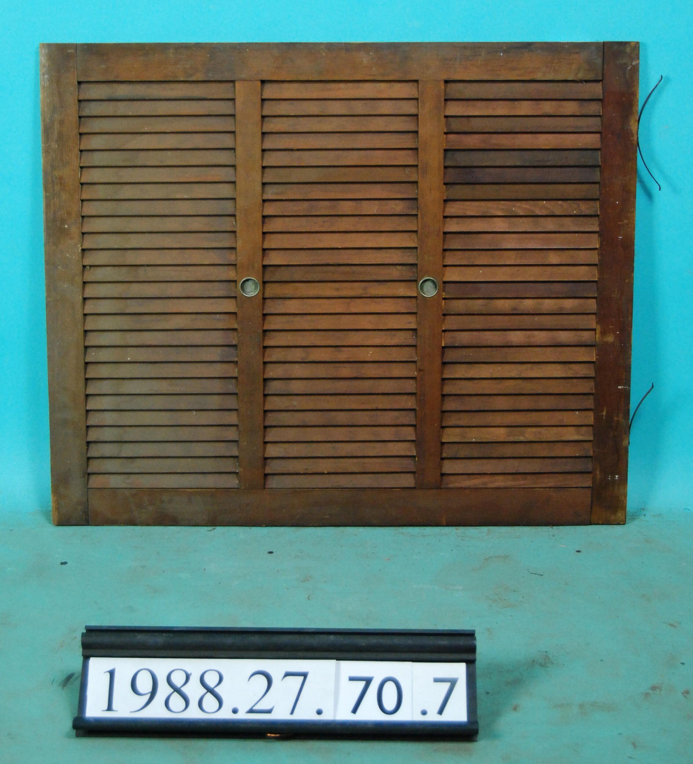 Single interior louvered shutter/blind designed to slide vertically within window frame,varnished. Material: Wood