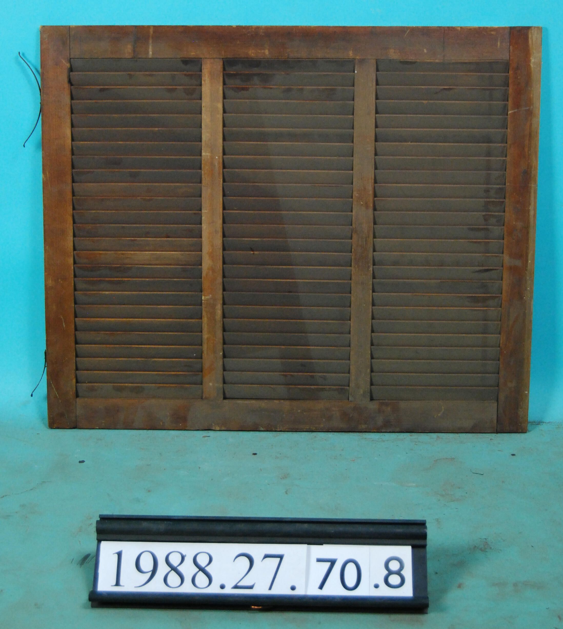 Single interior louvered shutter/blind designed to slide vertically within window frame,varnished. Material: Wood
