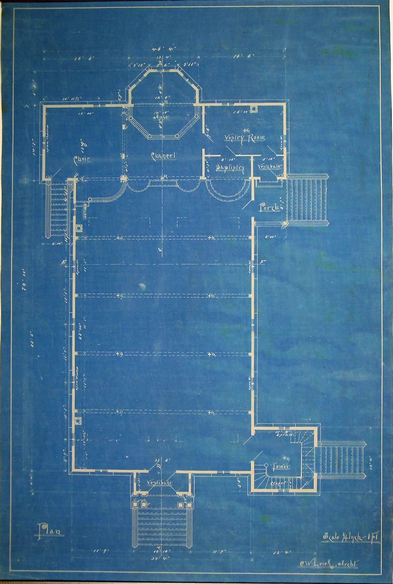 Building Name: Grace Episcopal Church Architect: C.W. Leick Building Location: Astoria, OR Still Existing?: yes Building Description: church List of Drawings in set: print of plan, blueprint