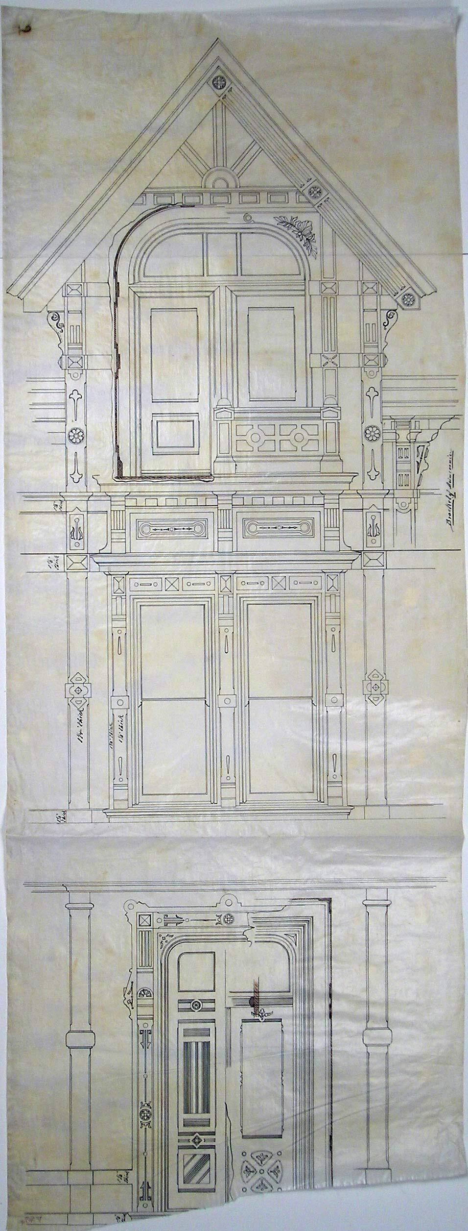 Building Name: Flavel House Architect: C.W. Leick Building Location: Atoria, OR Still Existing?: yes Building Description: elaborate victorian residence List of Drawings in set: elevation and cornice detail