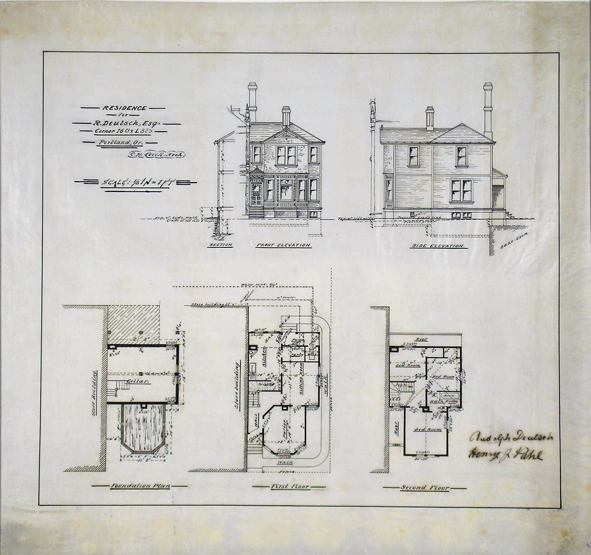 List of Drawings in set: single sheet, foundation plan, first floor plan, second floor plan, front elevation, side elevation, sectionLexicon