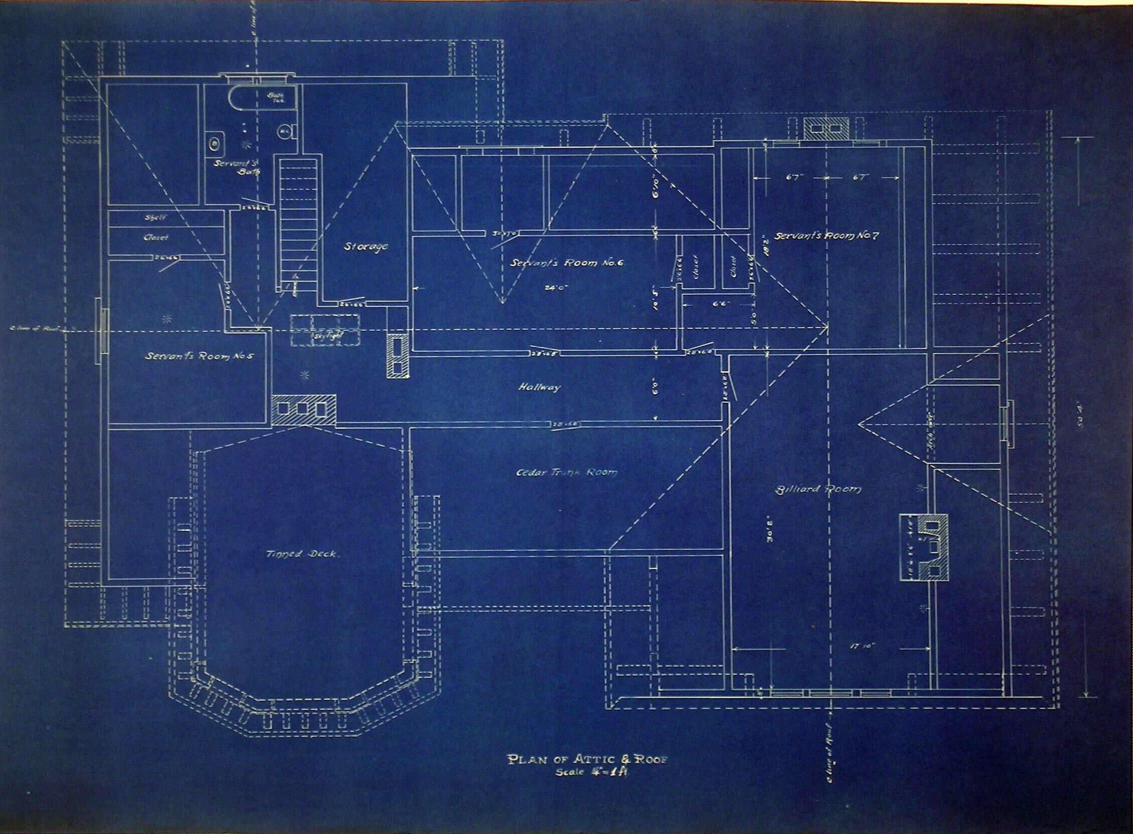 Building Name: Baron de Peck Residence Architect: unknown Building Location: unknown, probably not local to Portland OR Still Existing?:unknown Building Description: List of Drawings in set: Plan for attic and roof