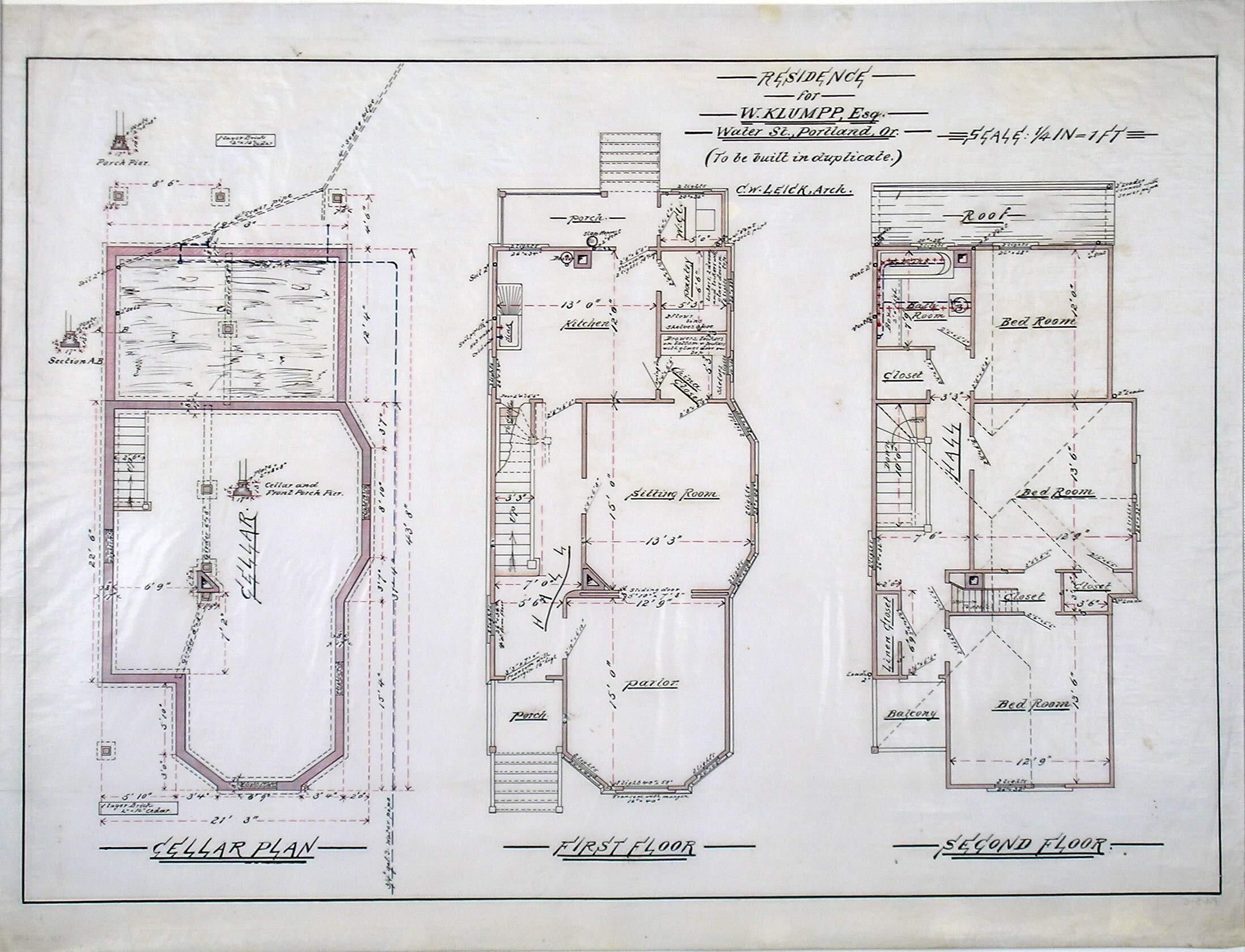 List of Drawings in set: cellar plan, first floor plan, second floor planLexicon