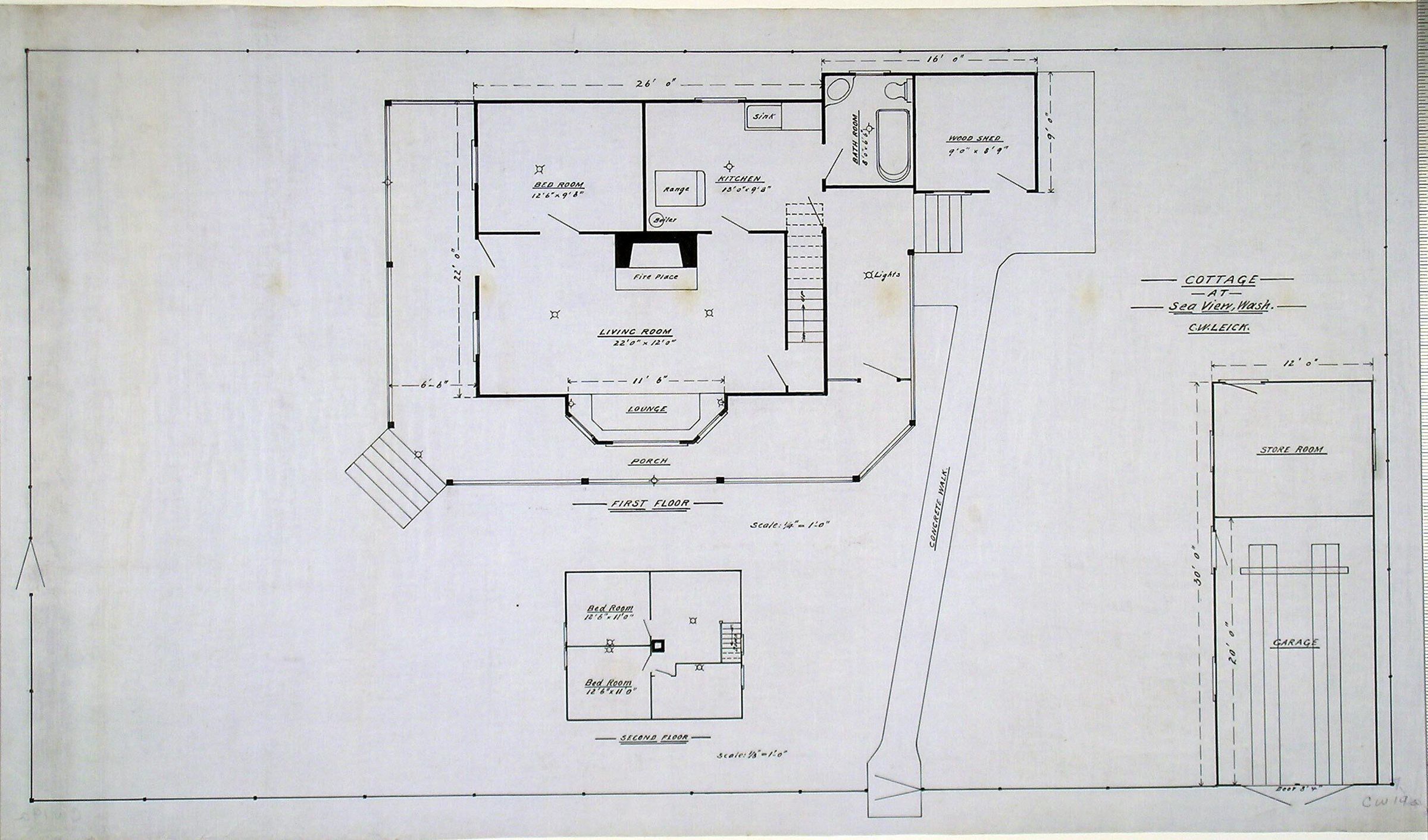 Building Name: Cottage at Seaview Washington Architect: C.W. Leick Building Location: Seaview Washington Still Existing?: unknown Building Description: beach house List of Drawings in set: first floor plan, second floor plan, garage plan