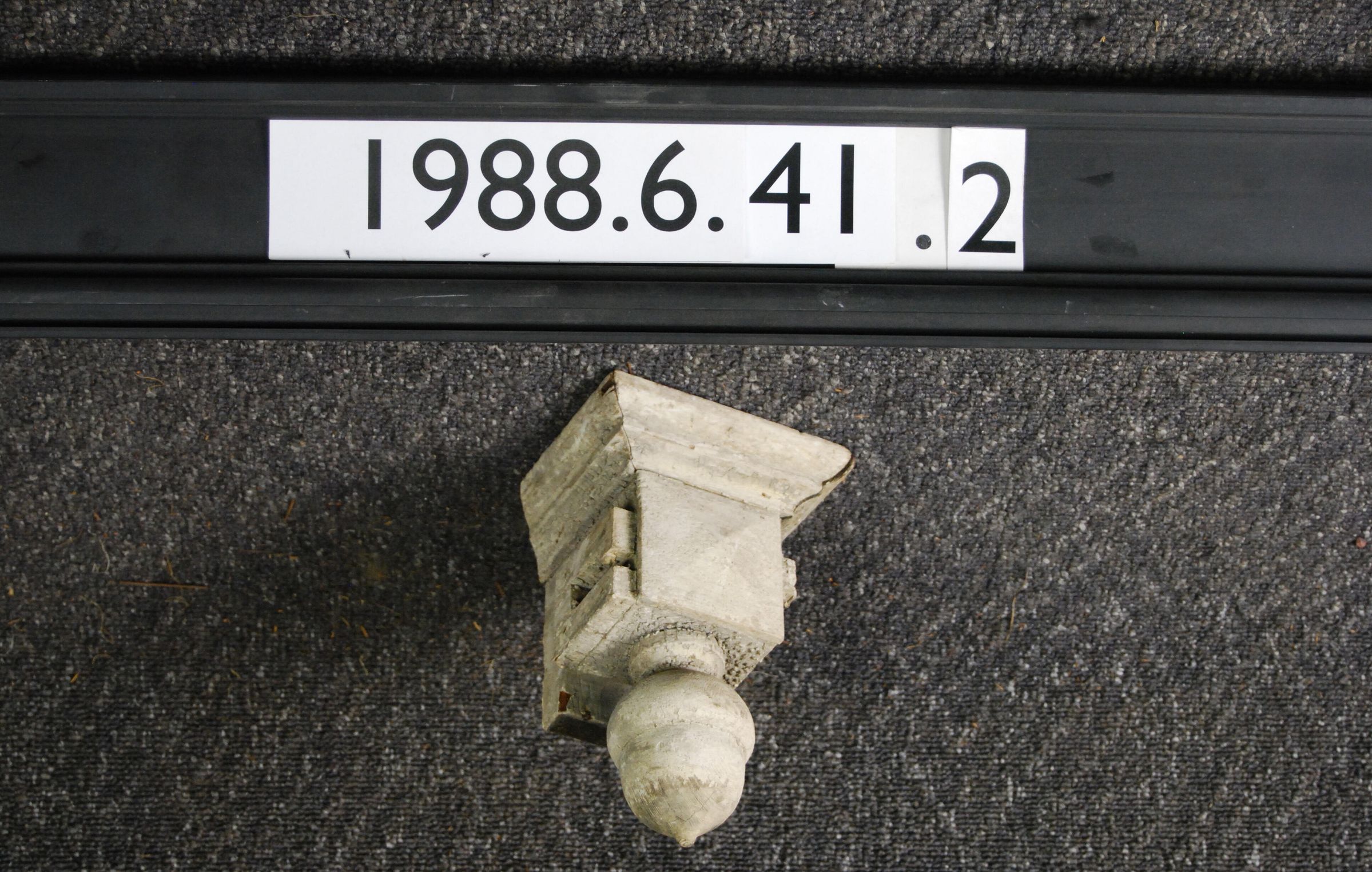 Wood bracket. Greek key ornament on each side. Acorn drop ornament . Painted cream colored Inscriptions or Markings: Manufacturer: Place of Manufacturer: Design motif: Style: Finish: Painted