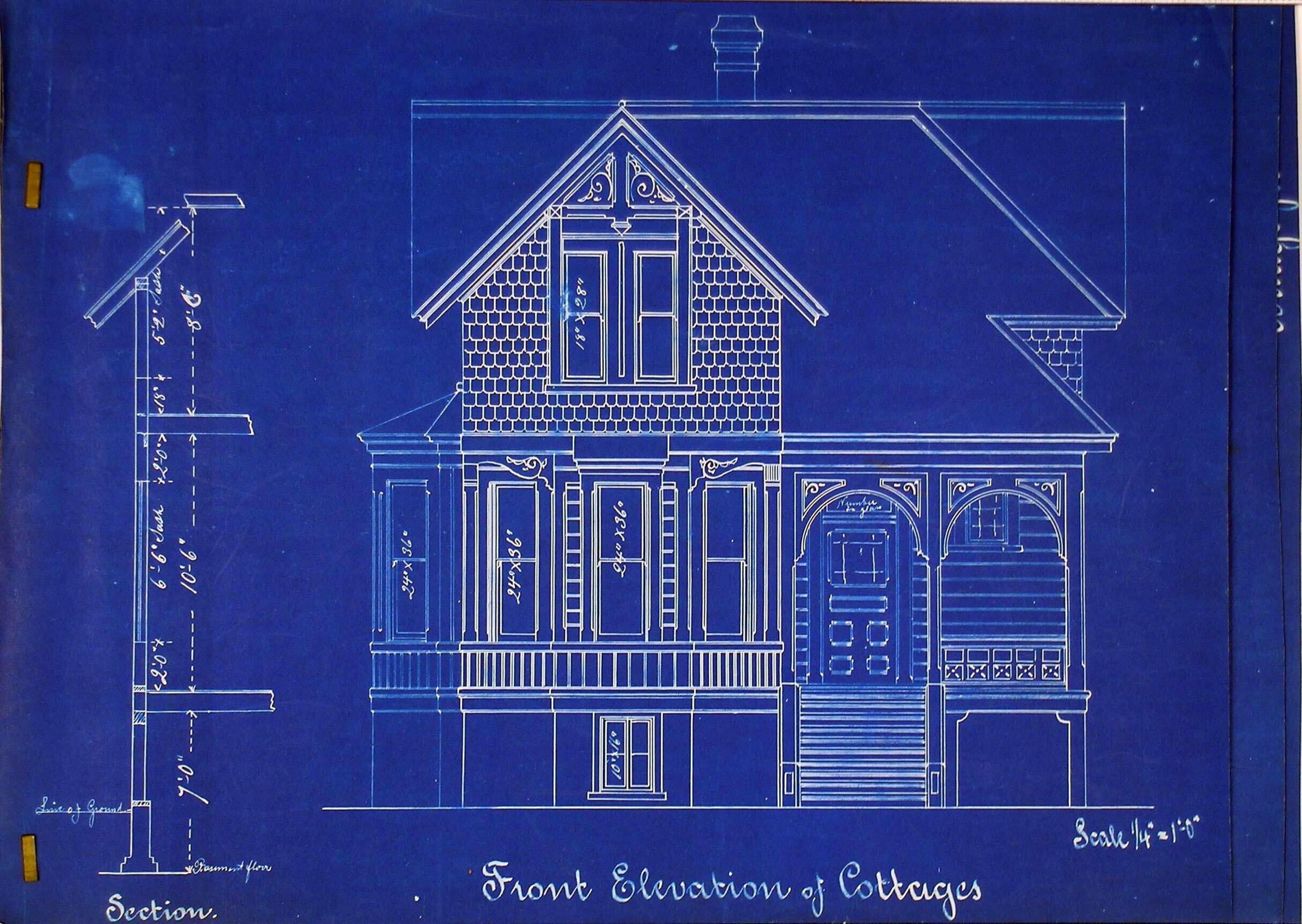 Building Name: Cottages Architect: unknown Building Location: unknown Still Existing?: unknown Building Description: small victorian residence List of Drawings in set: front elevation, section