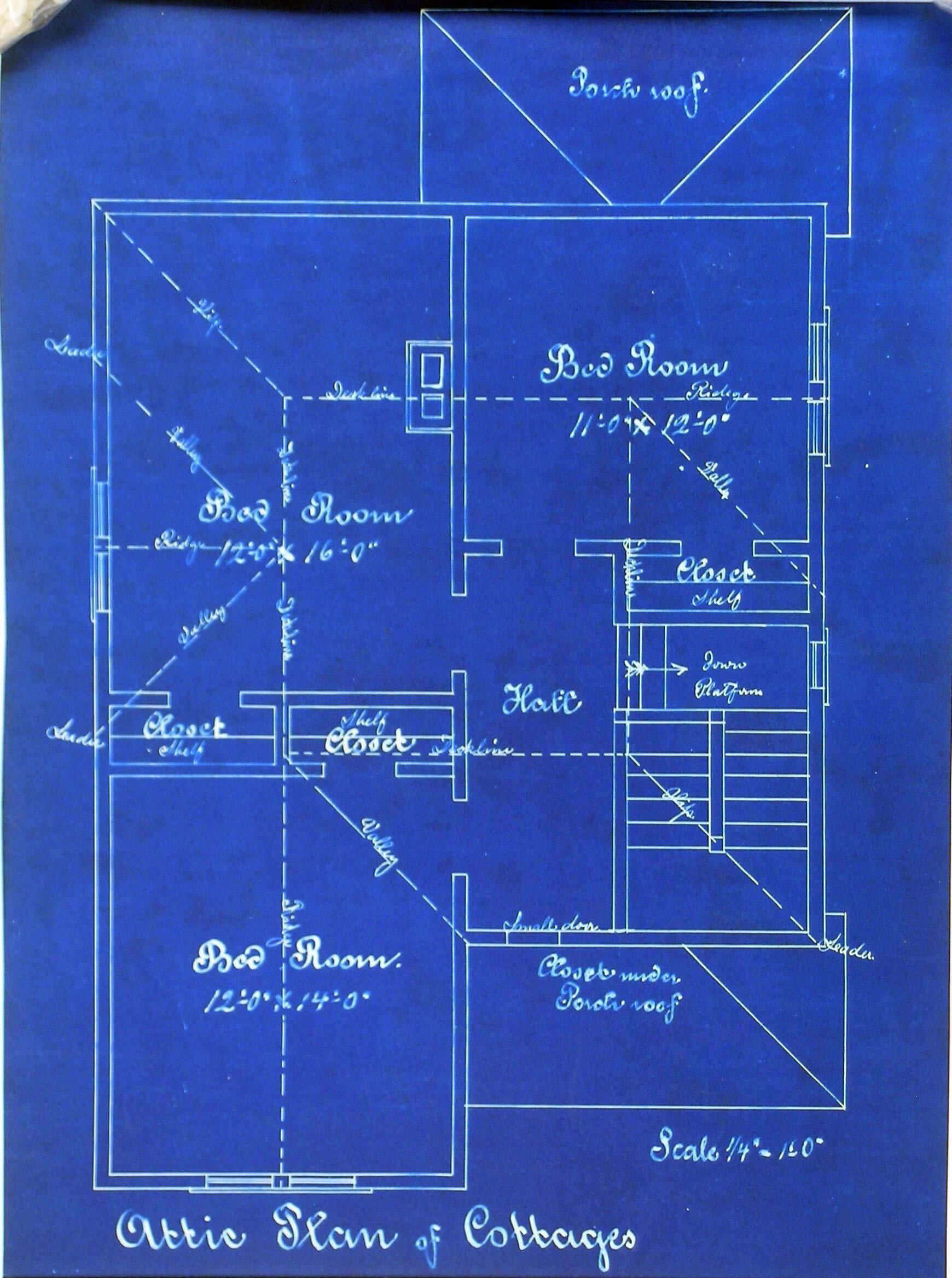 Building Name: Cottages Architect: unknown Building Location: unknown Still Existing?: unknown Building Description: small victorian residence List of Drawings in set: attic plan