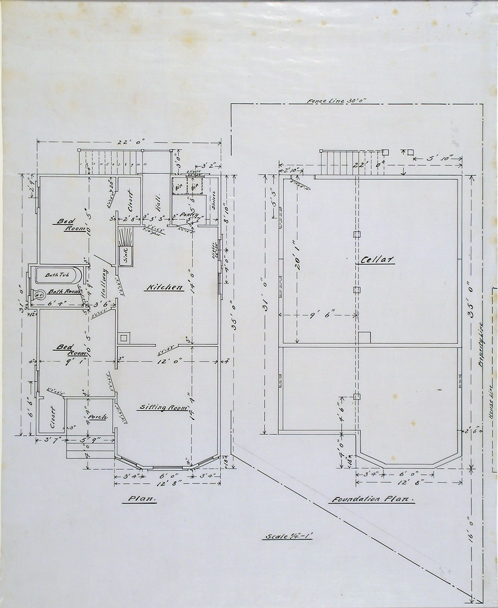 Building Name: Victorian Residence Architect: est. C.W. Leick Building Location: unknown Still Existing?: unknown Building Description: small victorian residence with shallow front bay List of Drawings in set: first floor plan, foundation plan