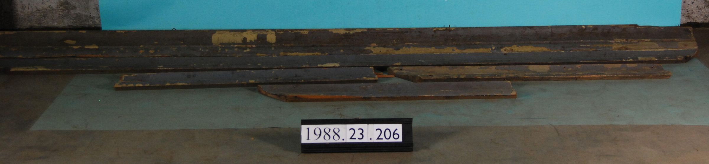 One lot of five exterior wood ogee-shaped moldings .Painted grey Manufacturer: Place of Manufacturer: Design motif: Style: Finish: Painted